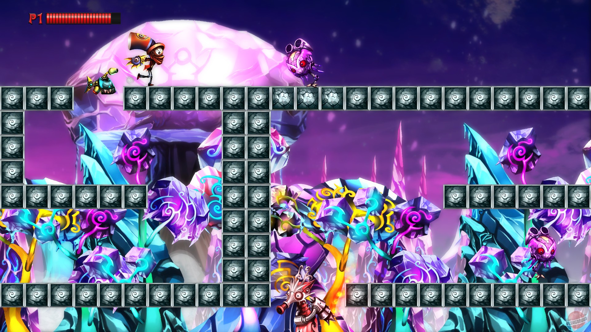 Совершенно новое приключение в мире Mecho Wars. Бегайте и стреляйте, пробираясь через хаотичные уровни, заполненные шипами, бездонными ямами и армией смертельных роботов. Играйте в одиночку или объединяйтесь с друзьями в локальном мультиплеере на 4 игроков.