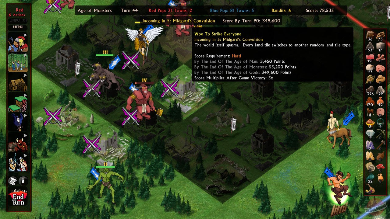 В Skyward Collapse вы не будете напрямую управлять каждым воином или крестьянином. Вы — высшая сила, архитектор судеб и мастер тонких намёков (в виде гигантских троллей и зевсов). Ваш инструментарий — это боги, герои, чудовища и артефакты, которые вы размещаете на карте. А дальше они делают всё сами: воюют, торгуют, строят города и, конечно же, пытаются уничтожить друг друга. Ваша священная миссия — поддерживать хрупкий баланс. Слишком мирно? Пора подбросить немного хаоса, чтобы выполнить задание. Слишком много войны? Быстро вызывайте Ньорд, чтобы он всех успокоил своим дождём. Это как быть ведущим на шоу «Битва экстрасенсов», только вместо предсказаний — руны и вместо слез — огненные шары.