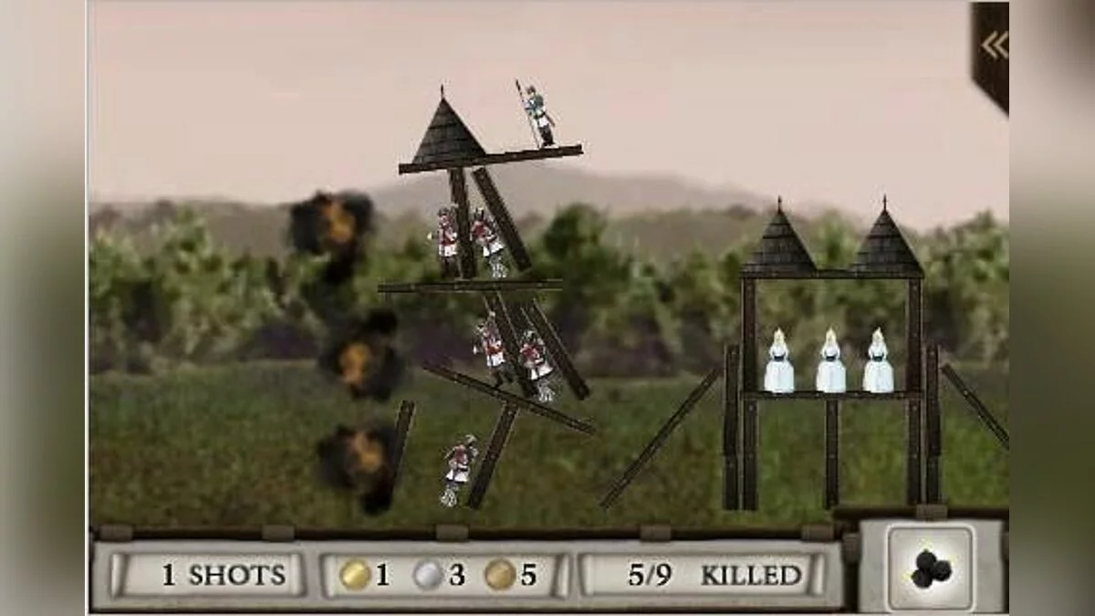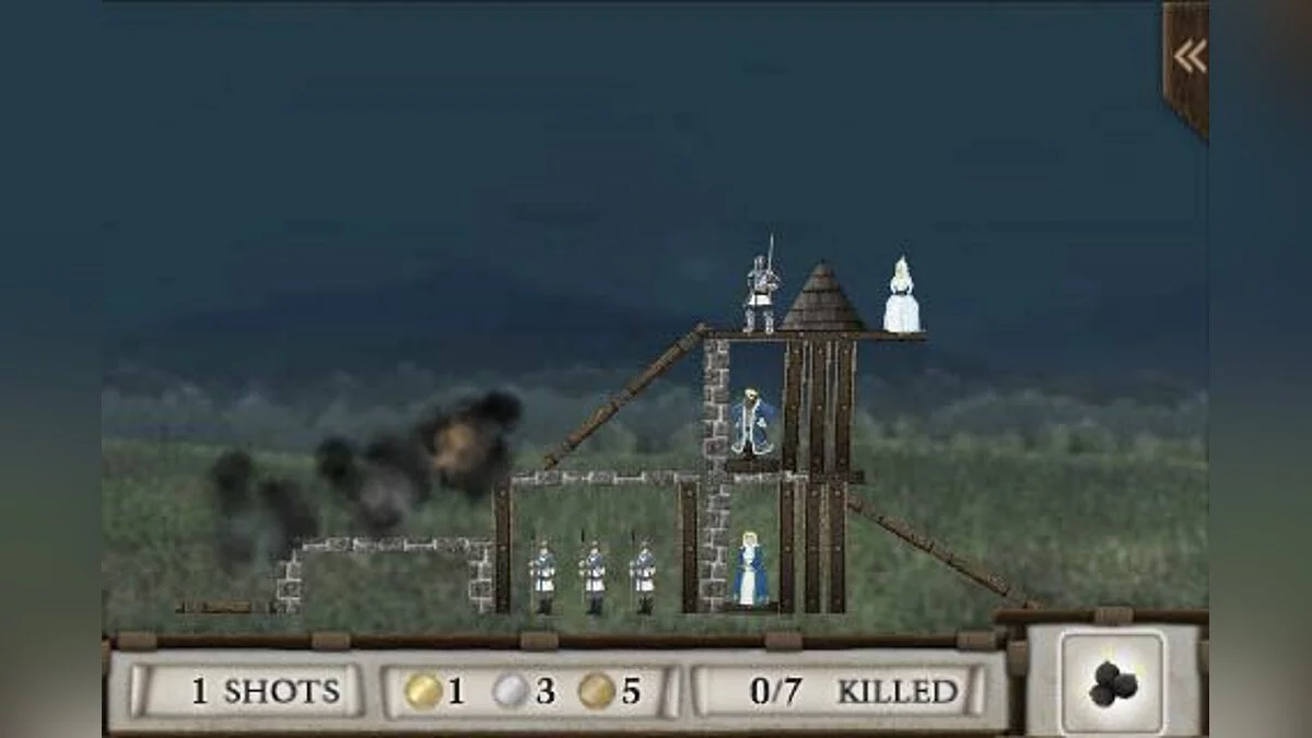 Ваша миссия, если вы её примете (а вы точно примете, ведь медали ждут!), — уничтожить все замки на картах The Black Shores, Umbria, Wintervale, Dante Flats и Betsonia. Но просто так швырять камни — это для новичков. В Crush the Castle всё дело в мастерстве и экономии боеприпасов. У вас ограниченное количество снарядов — от простых валунов до взрывчатых бочек и даже чёрных дыр (!) — и цель состоит в том, чтобы за минимальное число выстрелов уничтожить не только саму крепость, но и всех её обитателей. Да-да, эти маленькие пиксельные рыцари и леди должны исчезнуть с лица земли. Не переживайте, это же всего лишь картонные фигурки... или нет? Геймплей на удивление глубокий: вам предстоит просчитывать угол запуска, силу броска и реакцию конструкции на удар, словно вы инженер-демолиционщик средневековья.
