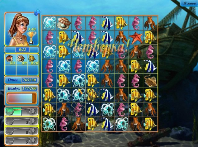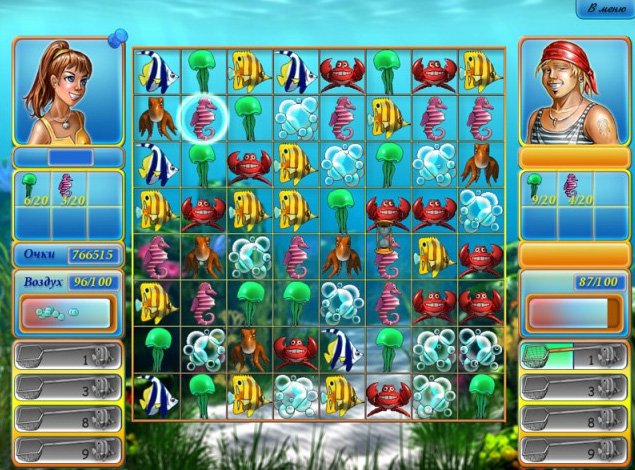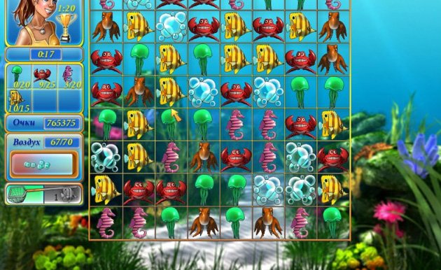 "Магазин тропических рыбок" - пазл, где вы собираете морскую живность по три в ряд по заказу владельца магазина. Ныряя на дно моря, вы выбираете тех рыбок, которые в данный момент требуются покупателям. А чтобы не терять запасы кислорода, выставляйте пузырьки воздуха в один ряд. Делая успехи в дайвинге, вы получите приглашения на соревнования по нырянию среди профессионалов.