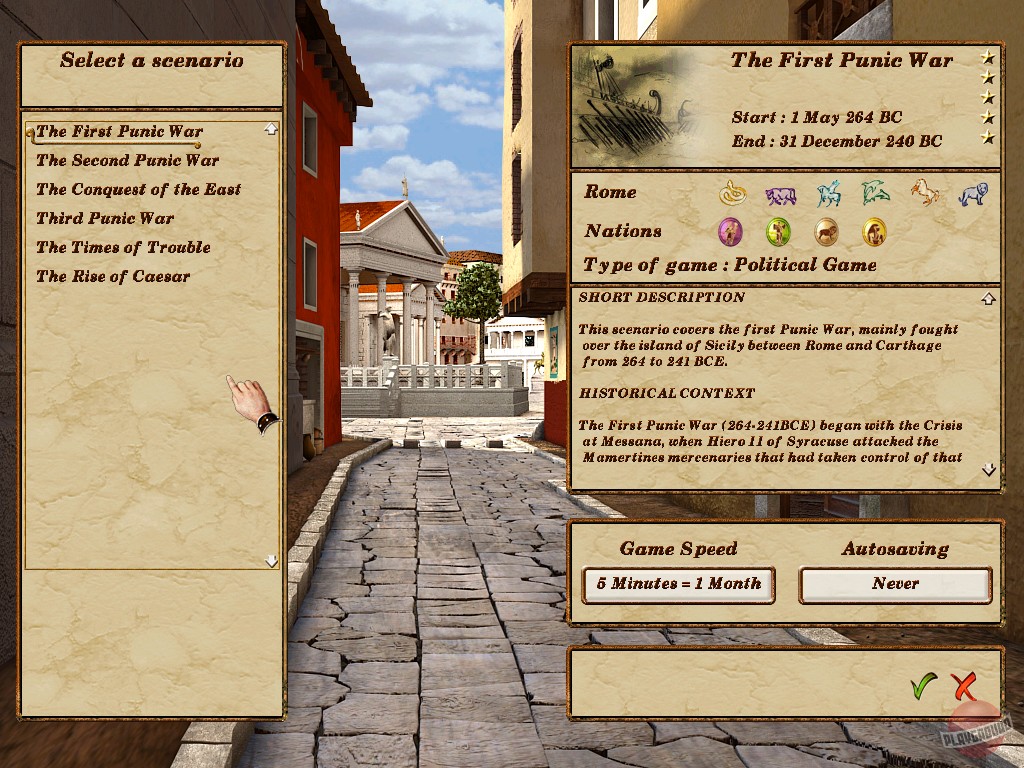 "Римская Империя" открывает нам историю древней цивилизации в период ее расцвета. Вы становитесь главным архитектором, от которого зависит схема полисов, обеспечение их необходимыми коммуникациями, приобретение лицензий и строительных материалов. Отчитываться придется перед самим Цезарем, а за ошибки - отвечать головой.