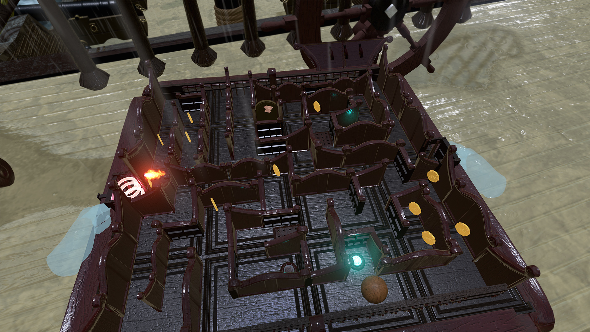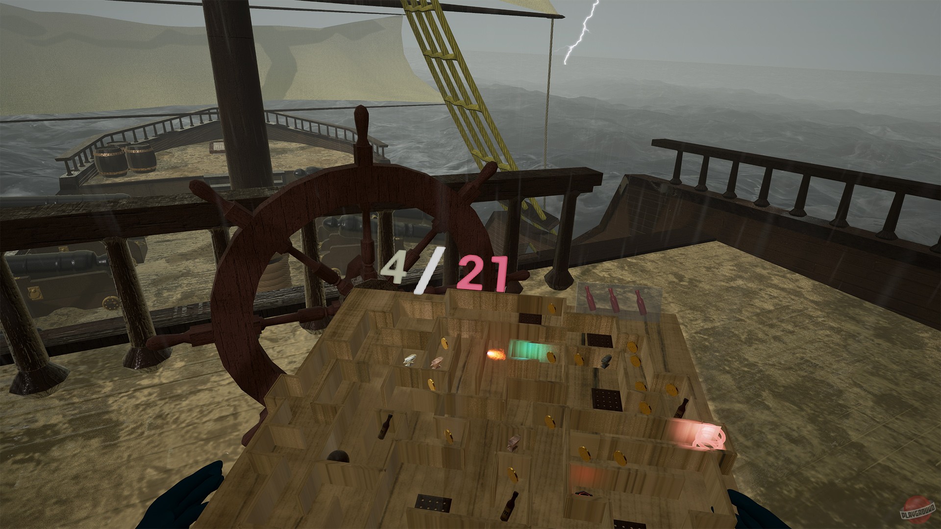Игроку предстоит принять участие в сражении фрегатов, вот только управление пушками связанно с решением головоломки, с участием лабиринта.