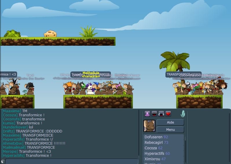 Выживете ли вы в сырном приключении этой просто веселой "free to win" игры со шляпками? Поможет Шаман или все сломает? Присоединяйтесь к 55 миллионам людей, которые уже попробовали это!Симулятор мышей, которого вы ждали«Вы – маленькая мышка в поисках сыра. Каждый успешно принесенный сыр открывает все больше вещей и уровней умений Шамана»… Но сможете ли вы сделать это? Из-за забавной и злой физики дела часто заканчиваются катастрофой со смешными цепными реакциями. Всегда есть какая-то хитрость в этих ненормальных постройках!Шаман, pro-игрок или неудачник? Добро или зло? Выбор за вами! Каждый раунд один из игроков становится всемогущим Шаманом, который может использовать свои умения, чтобы помочь своим мышкам безопасно добыть сыр… Или же он все сломает? Чем больше мышей вы спасаете, тем быстрее получаете новые очки для древа умений, чтобы строить удивительные штуковины! Создайте все, что пожелает ваша душа, судьба в ваших руках.Не бывает двух похожих игрПроскочит ли толпа мышей или все погибнут? Поможет ли Шаман добраться до сыра? Или все сломает? Собьют ли вас ядра? С 7 официальными режимами, 200 официальными картами, десятками пользовательских режимов игры и более чем 5 миллионами пользовательских карт вас ждут практически бесконечные возможности. И это не считая того, что вы сможете сделать благодаря редактору карт и LUA модулям.Присоединяйтесь ради веселья, оставайтесь ради друзейПригласите ваших друзей в игру, общайтесь в чате, тролльте и смейтесь вместе. Участвуйте в предстоящих событиях, создайте свое собственное племя и общайтесь на форуме. Бросьте вызов вашим друзьям, чтобы получить топовые титулы и соревнуйтесь со всем миром в сборе «первосыра»! Вы столкнетесь с десятками, если не сотнями других мышей за право быть лучшим.Этическая free to play бизнес-модельTransformice – в буквальном смысле бесплатная игра. Шляпы! Все вещи, которые вы можете купить, будут носить чисто косметический характер: вы никогда не увидите вещь, влияющую на геймплей! Кроме того, 100% покупаемых вещей открываемы в игре; да-да, только от вашего мастерства зависит, сможете ли вы получить их все! Удачи, хотя некоторые «мастерские» вещи очень сложно получить. Каждый собранный сыр добавляется в ваш кошелек; чем больше сыра у вас есть, тем больше вещей вы можете открыть.