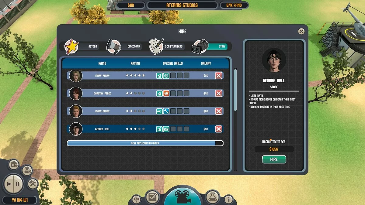 Геймплей Filmmaker Tycoon — это идеальный микс между управлением бизнесом и творческим процессом. Вам предстоит не просто строить здания, но и погрузиться в самую суть кинопроизводства. Сначала напишите сценарий: будет ли это душераздирающая мелодрама, экшен с трюками, от которых захватывает дух, или, может, комедия, где главный герой — говорящий кактус? Потом наймите актёров, которые подойдут на роли (осторожно, некоторые из них могут быть капризнее Кевина Костнера на съёмках «Воды для слонов»!), подберите режиссёра с нужным видением и начните съёмки. Вы сможете буквально следить за каждым этапом: от подбора локаций и реквизита до монтажа и премьеры. И да, вы даже сможете посмотреть свой готовый фильм целиком — это ли не мечта каждого, кто хоть раз представлял себя на месте Квентина Тарантино?