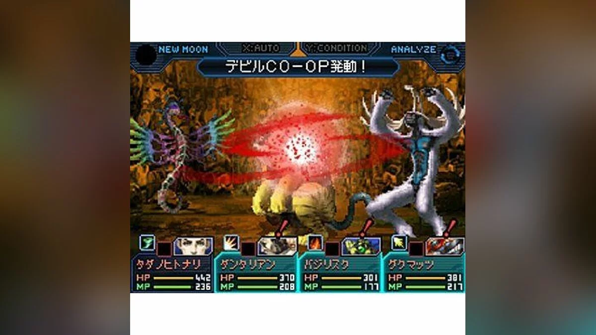 Геймплей Shin Megami Tensei: Strange Journey — это чистая классика серии SMT с фирменным соусом. Вы исследуете лабиринты Schwarzwelt от первого лица, чувствуя себя то ли героем «Деза», то ли участником самого мрачного квеста в истории. Но вы не одни! Главное оружие в вашем арсенале — способность договариваться с демонами. Да-да, вместо того чтобы просто рубить всех направо и налево, вы можете завести с ними светскую беседу, поторговаться за предметы или даже уговорить присоединиться к вашей команде. А затем — объединять их в могущественных новых существ через систему слияния (Fusion), создавая настоящих монстров для боя. Боевая система пошаговая и требует мозгов: эксплуатируйте слабости врагов стихиями, и ваши демоны получат дополнительные бесплатные ходы (Demon Co-op), превращая схватку в настоящую мясорубку в вашу пользу. Это не та JRPG, где можно просто тыкать в кнопки; здесь каждое решение имеет вес, а моральный выбор между Порядком, Хаосом или Нейтралитетом определит концовку мира.