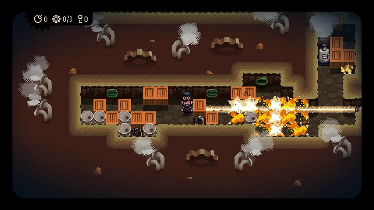 Mad Age & This Guy — это не просто аркада, это любовное письмо всем культовым играм последних тридцати лет, упакованное в стильный стимпанк-сеттинг с видом сверху. Геймплей здесь — это гениальный микс жанров: вы будете взрывать всё вокруг, как в классическом Bomberman, решать хитроумные головоломки, напоминающие Sokoban (помните, как таскали ящики?), и при этом лавировать между врагами в духе старых добрых аркад. Но есть нюанс! У вас нет бесконечных бомб — их количество ограничено, и пополнить запасы можно только, подобрав специальные бонусы на уровне. А ещё ваш герой бегает с фиксированной скоростью, так что забудьте про «кроссы» и «ускорялки». Это значит, что каждое ваше действие должно быть продумано до мелочей, ведь одна ошибка — и вы превратитесь в облако пара вместе со своими врагами. Идеальный баланс между хаотичным весельем и стратегическим мышлением!