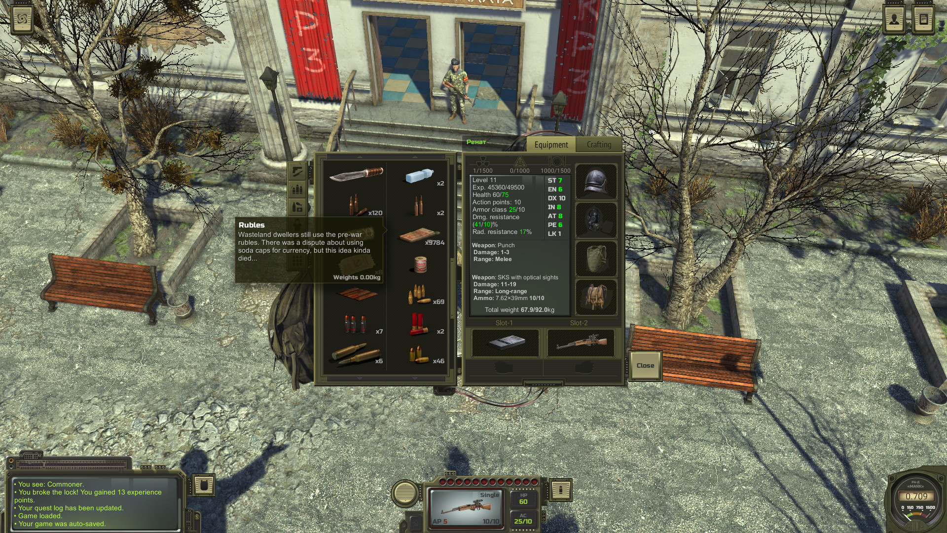 Геймплей ATOM RPG — это классическая пошаговая боевая система, где каждое действие стоит очков действия (AP), а каждый шаг может стать последним. Но не думайте, что это скучная лекция по тактике! Здесь вы можете создать персонажа-интеллектуала, который будет решать все проблемы диалогами и хакерством старых терминалов, или же стать настоящим "атомным Рэмбо", чья броня — это три пары ватных трусов и противогаз времен ВОВ. Игра предлагает невероятное разнообразие билдов благодаря системе характеристик, навыков и особенностей, которые могут как помочь, так и превратить ваше прохождение в комедию ошибок. Хотите быть мастером торговли? Отлично, обманывайте местных барыг, продавая им радиоактивные гвозди как антиквариат. Предпочитаете взлом и кражи? Пожалуйста, только не забудьте, что в этом мире даже сундуки могут быть заминированы. Квесты здесь такие же многослойные и неоднозначные, как советская инструкция по сборке шкафа — одно неверное решение, и вы можете случайно стать врагом всего поселения или, наоборот, его неофициальным героем.