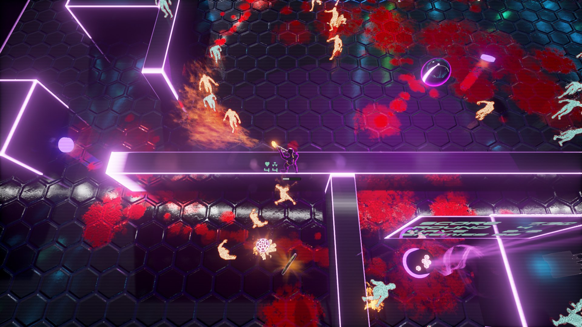 Neon Arena — это чистая, неразбавленная аркадная экшен-магия в жанре top-down shooter. Вы управляете своим космическим кораблём, маневрируя между вражескими пулями и лазерами, словно герой из ретро-фильма 80-х, которому очень не терпится домой. Геймплей затягивает с первых секунд: всё здесь подчинено законам скорости и рефлексов. Каждое убийство приносит очки, а каждая собранная монетка — это шаг к новым возможностям и улучшениям. Это идеальная игра для тех, кто любит динамичные аркадные шутеры с элементами скоринговой системы, где каждый запуск — это шанс побить свой собственный рекорд и почувствовать себя настоящим кибер-асом.