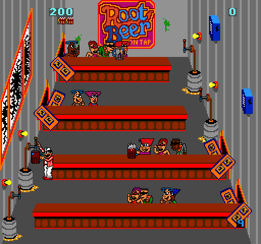 Забудьте про спокойную жизнь бармена из сериала «Клиника»! В культовой аркаде Root Beer Tapper, выпущенной в 1983 году легендарной компанией Bally Midway, вы не просто разливающий напитки созерцатель, а настоящий супергерой на кухне, чья миссия — не дать клиентам умереть от жажды (или стать слишком агрессивными). Эта игра — это экзамен на стрессоустойчивость, скорость реакции и умение работать в условиях, где каждый твой шаг может привести либо к щедрым чаевым, либо к тому, что недовольный посетитель сам заберется за стойку. Изначально задуманная как рекламный проект для пивной компании Anheuser-Busch, она вскоре превратилась в безалкогольное веселье под названием Root Beer Tapper, где вместо пива — освежающий корень-пивной напиток, но уровень хаоса остался прежним!
