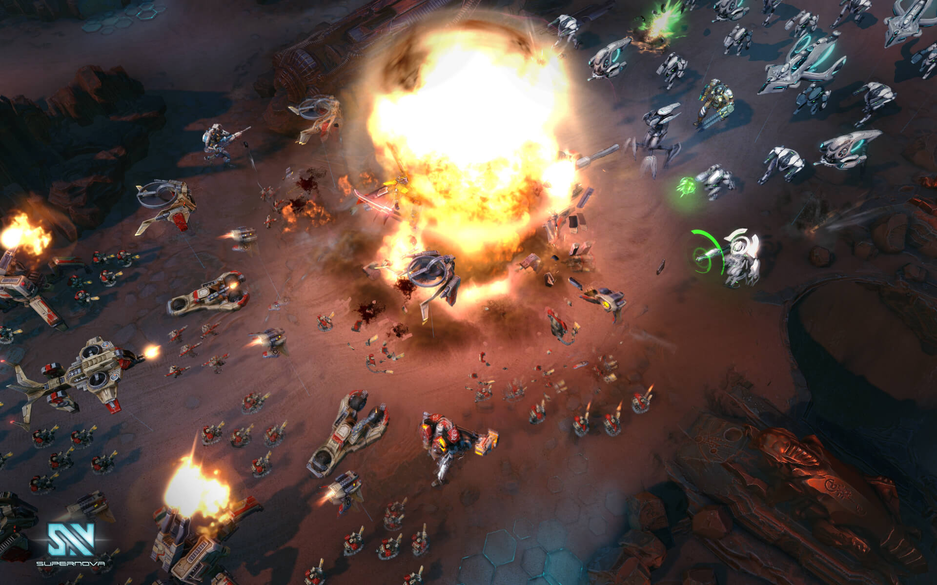 Мир Supernova (2015) — это зрелищное 3D-шоу с качественной графикой и атмосферной озвучкой, которое переносит вас в далёкое будущее, где ресурсы на исходе, а выживание зависит только от ваших действий на поле боя. Каждая схватка — это маленькая война, где важно всё: от правильного выбора Командира и его экипировки до своевременного усиления своих линий подкрепления. Хотите устроить засаду с помощью невидимых юнитов? Пожалуйста! Мечтаете ордой тяжёлых мехов проломить оборону врага? Ваши желания — наша команда разработчиков! Эта sci-fi MOBA с элементами стратегии в реальном времени предлагает огромный простор для экспериментов и создания собственных победных тактик.