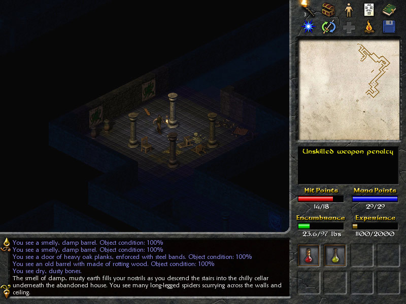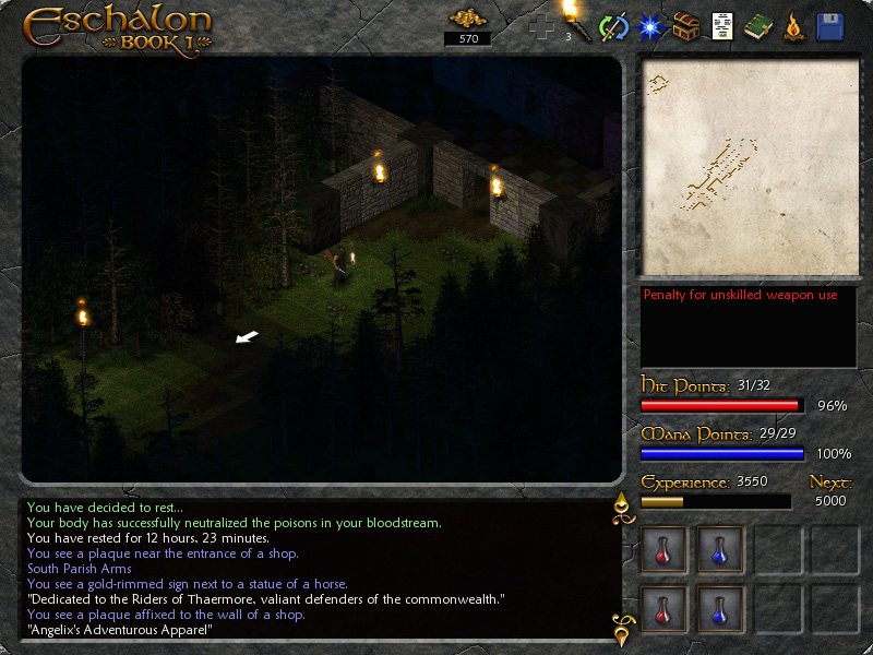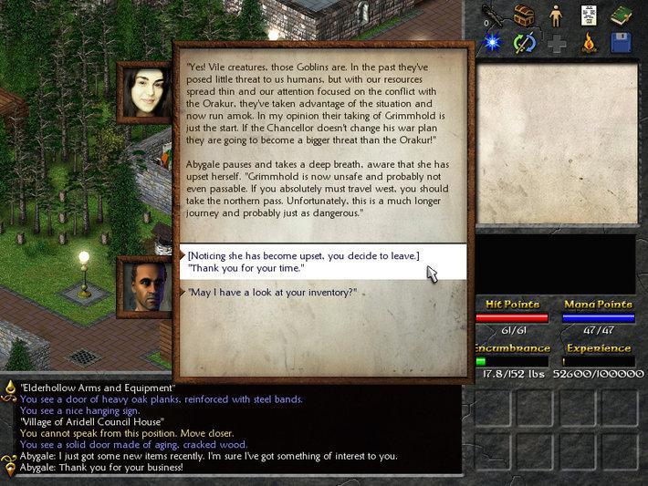 Eschalon: Book I — это любовное письмо таким хитам, как Baldur's Gate и старые Fallout'ы, написанное с душой и без лишнего пафоса. Вас ждёт огромный, живой мир, где каждый NPC может стать ключом к разгадке вашей личности или просто продаст вам пару буханок хлеба. Геймплей строится на глубокой системе прокачки персонажа, решении головоломок и, конечно же, на старом добром подземельном гринде. Сражайтесь с гоблинами, троллями и прочей нечистью пошагово, продумывая каждое действие: здесь не место для спама кнопкой мыши! Умение использовать окружение, правильный выбор оружия и своевременное применение зелья часто важнее голой силы. А ещё в игре есть одна из лучших систем освещения и звукового сопровождения для своего времени — шорох листьев и мерцающий свет факела действительно создают ощущение, что вы один в тёмном, опасном лесу.