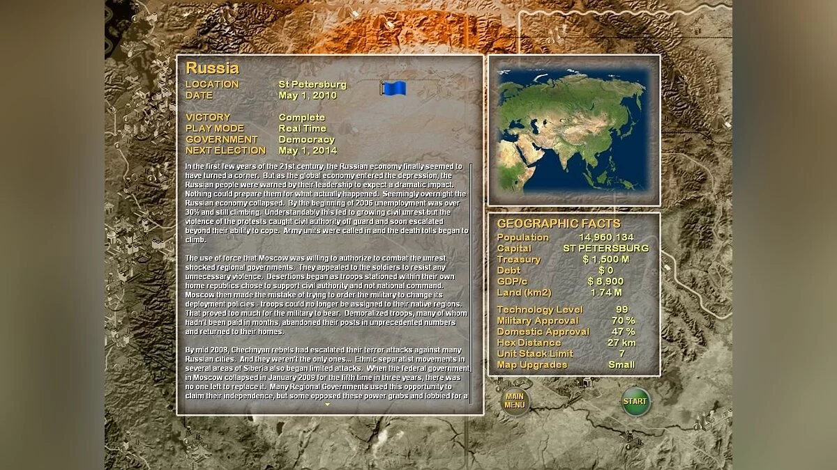 Особенность Supreme Ruler 2010 — её невероятный масштаб и свобода действий. Хотите воссоздать Советский Союз в XXI веке? Пожалуйста! Мечтаете о том, чтобы Швейцария стала новой Римской империей? Вперёд! Игра предлагает множество сценариев и стартовых точек, позволяя вам переписывать историю так, как вам заблагорассудится. Это идеальный выбор для фанатов сложных геополитических стратегий, которые ценят продуманную экономику и реалистичную дипломатию больше, чем красивую графику. Отзывы игроков часто сравнивают этот варгейм с шахматами на глобальной доске, где каждая фигура — это целая страна со своими амбициями и проблемами. Так что, если вы готовы принять вызов и доказать, что именно вы достойны занять Престол Планеты, то эта игра — ваш шанс проявить себя как стратег-гений, мастер интриг и, возможно, последний надежный человек на Земле.