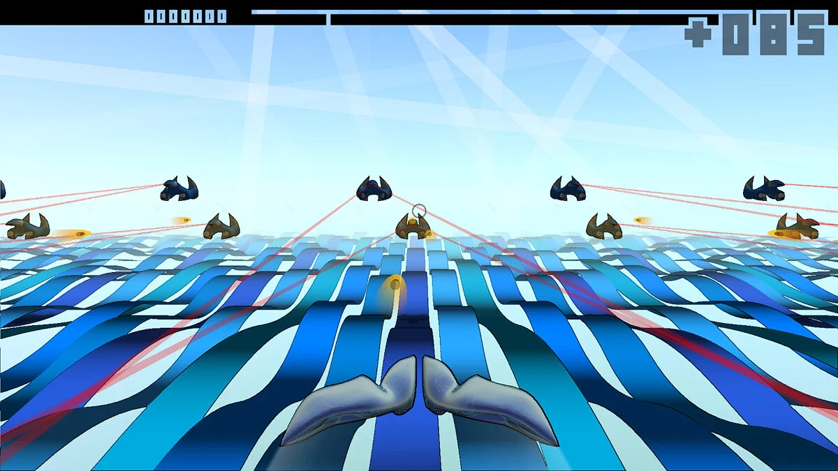 Это динамичный шутер с видом от первого лица на рельсах (on-rails shooter), где геймплей полностью синхронизирован с музыкой. Каждый аккорд, каждый удар баса влияет на происходящее на экране: в моменты кульминации композиции вас может засыпать целая армия врагов, а в тихие паузы мир превращается в медитативное пространство из переливающихся цветов и форм. Такой подход превращает каждую сессию в уникальное шоу, где вы не просто игрок, а дирижёр этого хаотичного, но удивительно гармоничного оркестра разрушения. И да, если вы когда-нибудь мечтали стать героем из «Трон» или «Фантастической четвёрки», чьи действия сопровождаются эпической саундтреком, то ваша мечта сбылась.