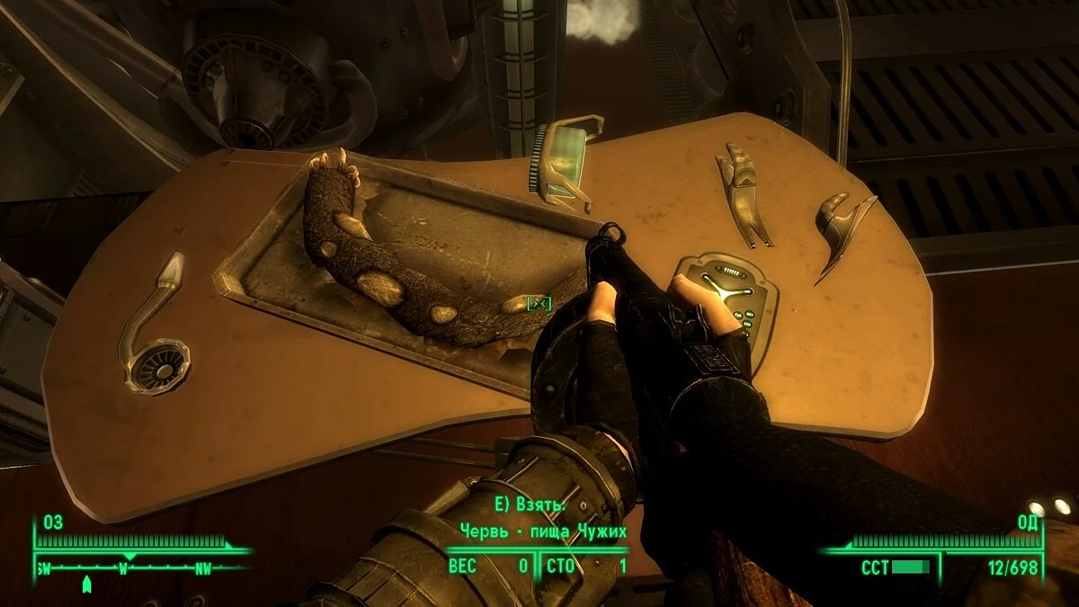 Сюжет прост, как дубина рейвера: вас, мирного жителя Пустошей, внезапно хватают инопланетяне и телепортируют на их гигантский корабль-матку. Ваша задача — не паниковать (хотя это сложно), найти капитанский мостик и сбежать обратно на Землю. Для этого придется объединиться с другими похищенными людьми из разных эпох — от старинного ковбоя до советского космонавта. Вместе вы будете пробиваться сквозь бесконечные, немного однообразные коридоры Mothership Zeta, расстреливая инопланетных солдат и исследуя странные лаборатории. Геймплей здесь действительно более линейный и боевой, чем в основной игре, так что если вы искали повод просто хорошенько пострелять из нового оружия, то вы его нашли! Среди новинок арсенала — мощные инопланетные бластеры и даже плазменная граната. Хотя, честно говоря, многие игроки отмечают, что найти на Земле Alien Blaster — уже половина успеха, и новое оружие может показаться лишним.