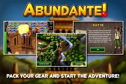 Abundante - головоломка, в которой игрок совершает путешествие к постройкам инков. Собирать спрятанные сокровища не так легко. Потребуется разбивать кирпичи, чтобы доставать из них драгоценные камни. Доставая различные виды драгоценностей, он прокладывает себе путь сквозь джунгли.