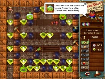 Boulder Dash-Pirate’s Quest - игра-головоломка, в которой мы вместе с Рокфордом и Кристал разыскиваем пиратские сокровища прапрадедушки. Следует поберечься падающих объектов, прокладывая себе путь через лабиринты с драгоценными камнями. Доступно несколько игровых режимов.