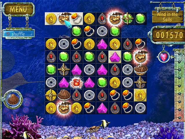 Геймплей Caribbean Riddle прост, как "Йо-хо-хо", но чертовски затягивающий! Перед вами открывается яркая карта с множеством уровней, каждый из которых — это новая локация с уникальной головоломкой. Ваша задача — очистить игровое поле от фишек, чтобы обнаружить спрятанный под ними клад. Звучит легко? А вот и нет! Многие фишки надежно заперты и недоступны для обычных ходов. Тут-то и вступают в бой ваши верные спутники — специальные бонусы и мощные комбо, которые помогут взорвать, расчистить или убрать любые преграды на пути к богатству. Это не просто клик-клак, это стратегическая битва за каждую монетку! С каждым пройденным уровнем сложность растет, как долг перед Дэви Джонсом, а награды становятся все щедрее, наполняя вашу коллекцию всё более роскошными сокровищами.