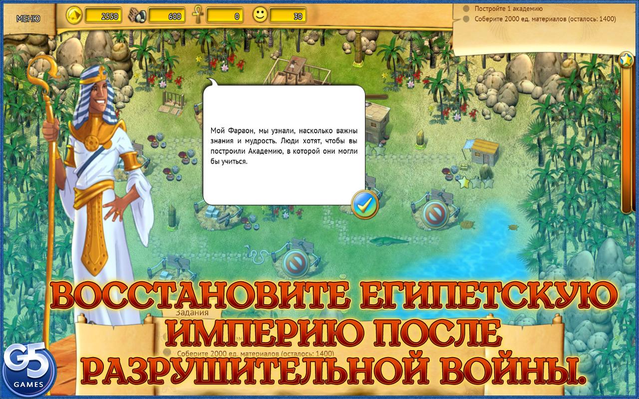 Fate of the Pharaoh - тайм-менеджер, где мы выстраиваем египесткие города и расширяем территорию царства египетского. Дома местных жителей требуют восстановления после сокрушительных войн.