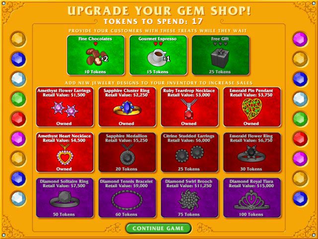 Геймплей Gem Shop — это идеальный микс стратегического планирования и тактической смекалки. Вам предстоит не только расставлять самоцветы на полках, но и устраивать грандиозные распродажи, отслеживать тренды моды и угадывать желания самых привередливых покупателей. Каждый новый уровень — это новый вызов: то принцесса запросит бриллиантовое ожерелье для бала, то суровый рыцарь захочет перстень с рубином для своей дамы сердца. И всё это под аккомпанемент звона золотых монет в вашей казне! Эта логическая игра заставит вас хорошенько пораскинуть мозгами, ведь чтобы расширить свой бизнес и превратить скромную лавку в мировой бренд, нужно быть не только продавцом, но и отличным психологом и маркетологом.