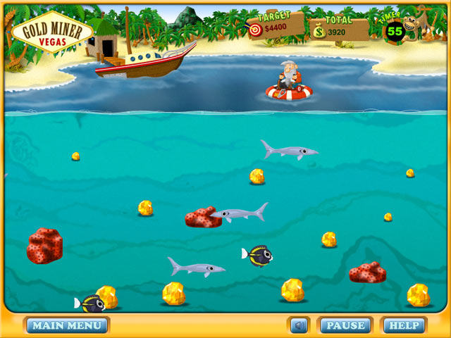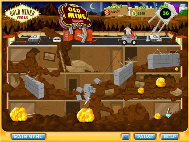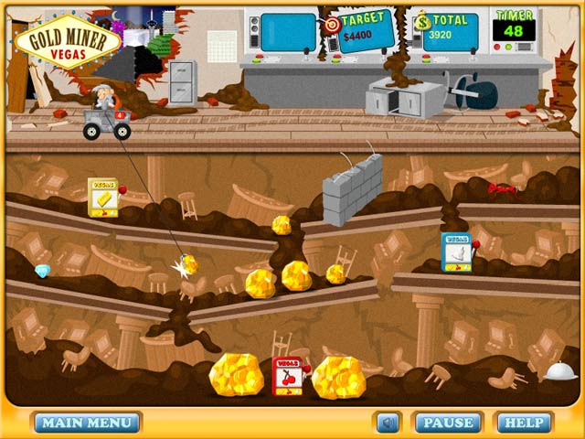Забудьте про скучные офисы и серые будни! В Gold Miner Vegas вы — отчаянный золотоискатель, чья мечта — не просто куча блестящих самородков, а целый Лас-Вегас, где можно спустить все свои сокровища в рулетку или на шоу с танцующими фонтанами! Эта аркадная игра — идеальный микс классического геймплея «золотого лихорадочного» жанра и современных фишек, который заставит вас забыть о времени. Ваш главный инструмент — не лопата, а хитроумный крюк на веревке, которым нужно ловко цеплять золотые слитки, драгоценные камни и даже старинные артефакты, пока они прокатываются мимо. И да, будьте готовы к тому, что рядом будут шнырять конкуренты и всякие негодяи, мечтающие стащить ваш улов!