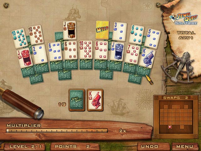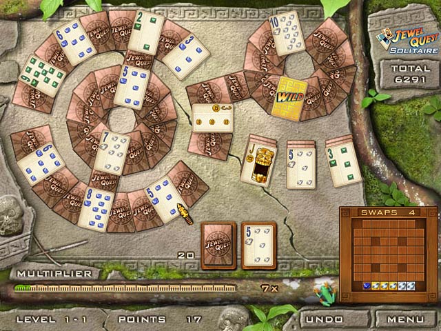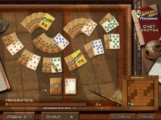 Дорогие искатели приключений, картёжники и просто любители хорошего пасьянса! Забудьте про скучные колоды с королями и дамами в старомодных нарядах. Встречайте Jewel Quest Solitaire — игру, где классический три-пикс (Tri-Peaks) солитер встречается лицом к лицу с аркадным поиском сокровищ, и результат этого свидания настолько удачный, что даже Индиана Джонс завидовал бы вашей коллекции драгоценностей! Это не просто карточная игра, это настоящая экспедиция по древним руинам, где каждая открытая карта — это шаг к разгадке тайны и новой горстке самоцветов.