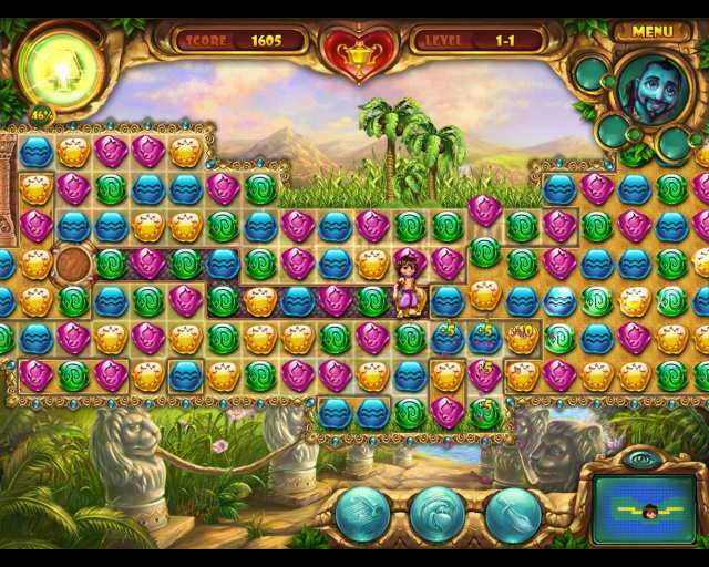 Геймплей Lamp of Aladdin — это идеальный микс расслабляющей стратегии и напряженного поиска. На одних уровнях вы будете переставлять самоцветы, фрукты и восточные безделушки, чтобы выполнить задания (например, освободить пленников или собрать определенное количество золота), а на других — превратитесь в детектива Шерлока Холмса, разглядывая каждый пиксель в поисках нужного предмета по силуэту. Сложность постепенно растет, как борода у джина после тысячелетнего заточения, поэтому скучать не придется. А еще вас ждут полезные бонусы и улучшения, которые помогут справиться даже с самыми заковыристыми головоломками. Это не просто казуальная игра, это тренировка для вашего мозга в шелковых тапочках!
