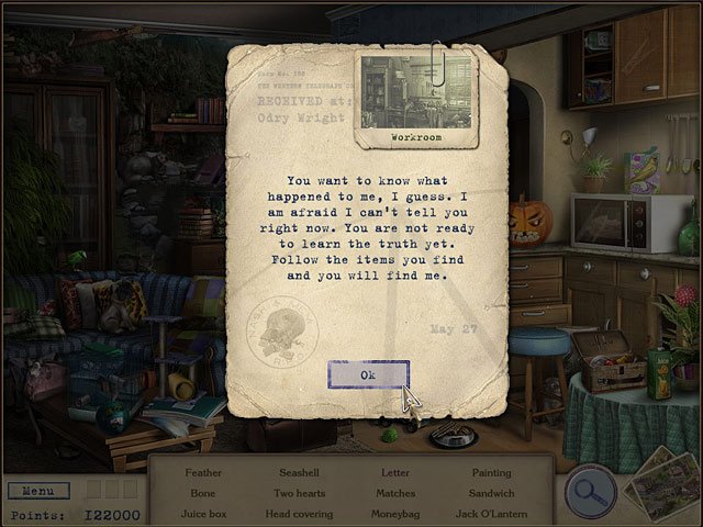 Letters from Nowhere - игра в жанре "поиск предметов". Одри разыскивает своего исчезнувшего при загадочных обстоятельствах мужа. Единственной ее зацепкой стали Письма из Ниоткуда. В этой драматической истории немало загадок, которые приведут Одри в знаковые для ее мужа места.