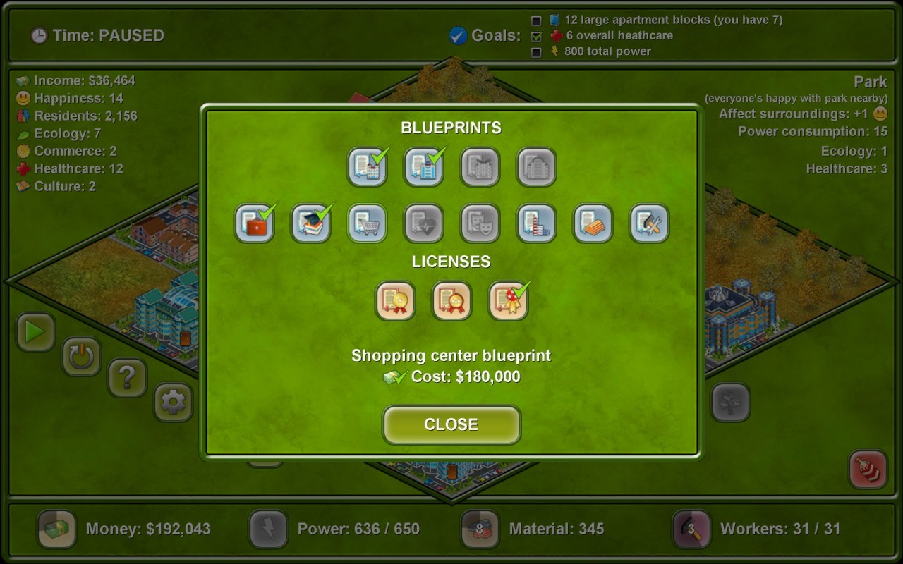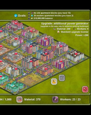 Megapolis - экономическая стратегия. Вы выстраиваете красивые и комфортные городские зоны из разнообразных блоков, а также обеспечиваете жителей всеми необходимыми сервисами. По мере роста количества застроенных участков, вы получаете настоящий мегаполис. В одном из режимов игры есть возможность создавать собственные сценарии.