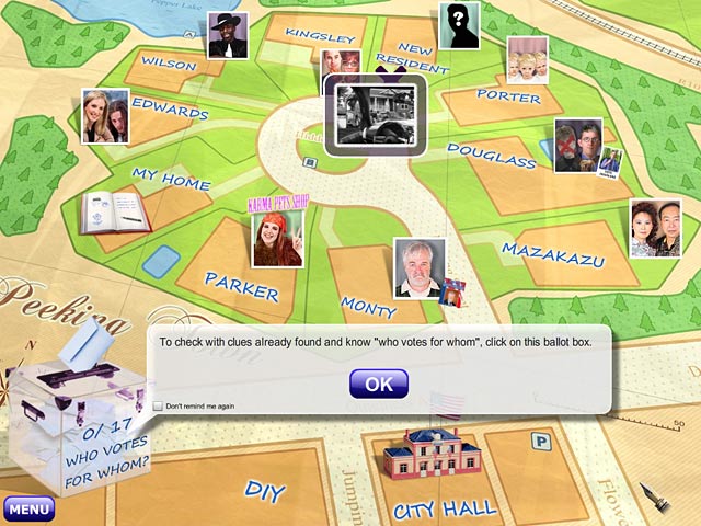 Miss Teri Tale: Vote 4 Me - детективная игра, в которой мы вместе с писательницей детективов Мисс Тэрри Тейл пытаемся узнать, кто станет следующим мэром городка Пикинг Таун. Она собирает мнения соседей и узнает предпочтения избирателей.
