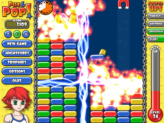 Pile and Pop предлагает два уникальных режима, чтобы проверить все грани вашего гения. В одном вам понадобятся молниеносная реакция и навыки настоящего стратега, чтобы справляться с нарастающим потоком блоков. В другом режиме можно расслабиться и подумать головой, продумывая ходы наперед, как шахматист, планирующий мат в три хода. А чтобы жизнь медом не казалась, игра щедро снабжает вас мощными бонусами. Запутались в нагромождении разноцветного бардака? Не проблема! Используйте специальные способности, чтобы взорвать мешающие блоки и вернуть порядок в свою вселенную. С тремя уровнями сложности — от «Мир, дружба, жвачка» до «Выживание в аду» — каждый найдет себе занятие по душе.