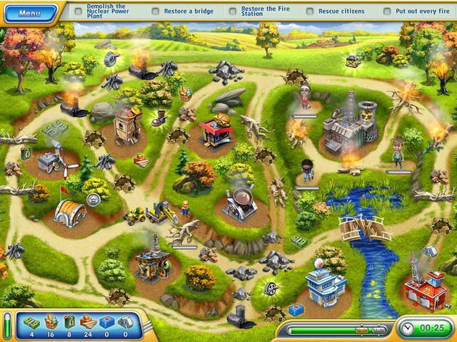 Ваша задача в Rescue Frenzy — классический тайм-менеджмент с перчинкой адреналина. Вы будете расчищать завалы после землетрясений, тушить огненные очаги, восстанавливать разрушенную инфраструктуру и, конечно же, спасать невинных горожан и милых животных (в игре их целых восемь, и каждый — как пушистый мотиватор для ваших подвигов!). Геймплей прост и увлекателен: вы управляете своей командой, направляя технику на выполнение задач, собираете полезные бонусы для увеличения скорости и эффективности, и гонитесь за золотыми медалями на каждом из 45 напряжённых уровней. Это как «Офис» Чака Паланика, но вместо бумаг — пожарные машины, а вместо Дэвида Бреннера — ваш внутренний голос, кричащий: «Быстрее! Там кошечка на дереве!».