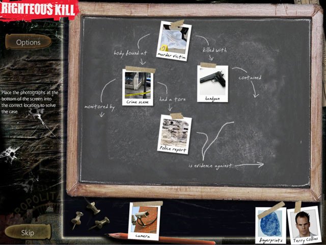 Righteous Kill 2 - детективная игра, созданная по мотивам фильма "Право на убийство". Мы занимаемся поисками подражателя серийному убийце в Нью-Йорке. Собрав все улики вместе, можно будет составить целостную картину, вычленим истинные мотивы убийств. Со временем, у нас появляются подозреваемые и среди полицейских.