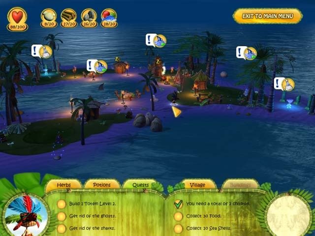 Shaman Odyssey - Tropic Adventure представляет собой симулятор правителя. Игрок становится вождем племени тропического острова Лагуна. Люди племени были разделены многие годы, воды патрулируют пираты, у побережья появляются голодные акулы. Следует справиться со всеми напастями и объединить племя в единый союз.