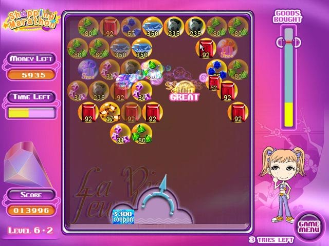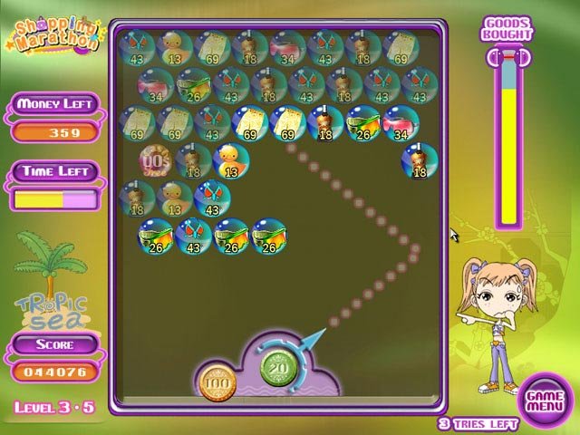 Shopping Marathon — это яркий и веселый представитель жанра головоломок, выполненный в стиле культовой серии Bust-A-Move/Puzzle Bobble. Ваша задача — наводить порядок в хаотичном потоке товаров, летящих сверху. Стреляйте шарами с символами продуктов, чтобы создавать цепочки из трех и более одинаковых предметов. Когда вы успешно собираете комбинацию, товары исчезают, освобождая место и приближая вас к заветной цели уровня. Это как устроить генеральную уборку в своем холодильнике, но гораздо веселее и без риска найти там загадочную баночку с содержимым неизвестного происхождения. Геймплей прост до гениальности, но затягивает так, что вы вдруг обнаружите, что уже третий час подряд решаете, стоит ли вам стрелять в тот самый злополучный пакет молока или лучше приберечь выстрел для связки бананов.