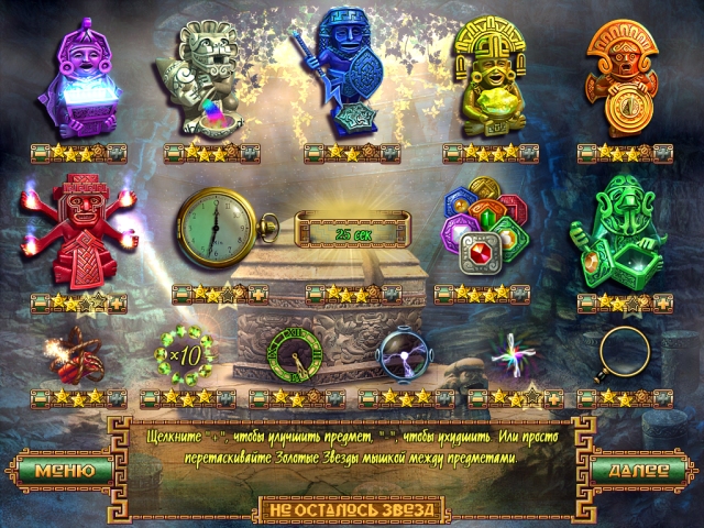 The Treasures Of Montezuma - игра-головоломка. Создавайте цепочки минимум из одинаковых фишек, чтобы получить волшебные кристаллы. Только они могут показать дорогу к сокровищам легендарного императора ацтеков Монтесумы в горах Мексики. Есть возможность открыть 4 бонусных игры и 8 дополнительных уровней.