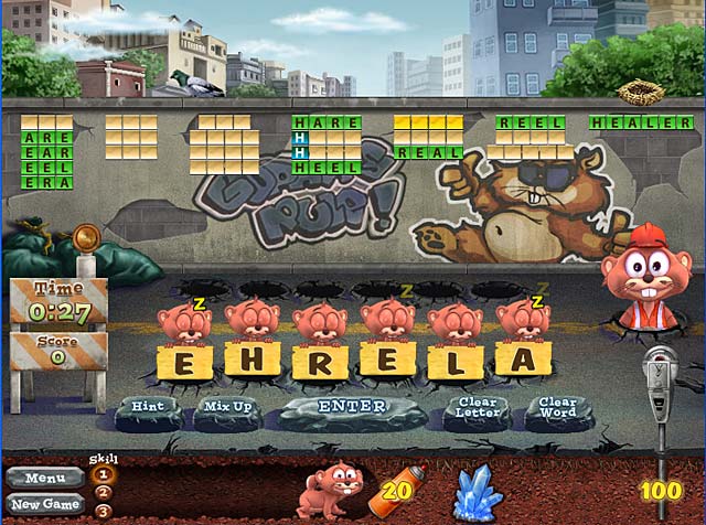 Геймплей Word Whomp Underground прост, как три копейки, но увлекателен, как сериал «Офис». Перед вами появляется набор из шести букв, и ваша задача — найти как можно больше слов длиной от трех букв и больше. Каждое найденное слово — это не просто очки, это топливо для землероек! Чем длиннее слово, тем мощнее будет удар бура, а собранные по пути желуди дают дополнительный заряд энергии. Следите за таймером: время не ждет, и ваши пушистые напарники ждут от вас словесного фейерверка! Это не просто головоломка, это гонка со временем в мире, где лексика — валюта, а грамотность — ключ к успеху.