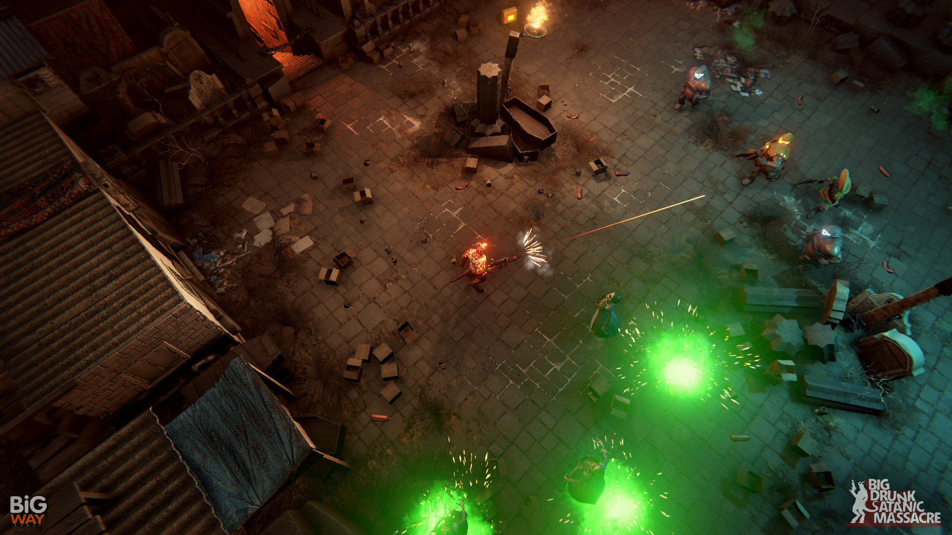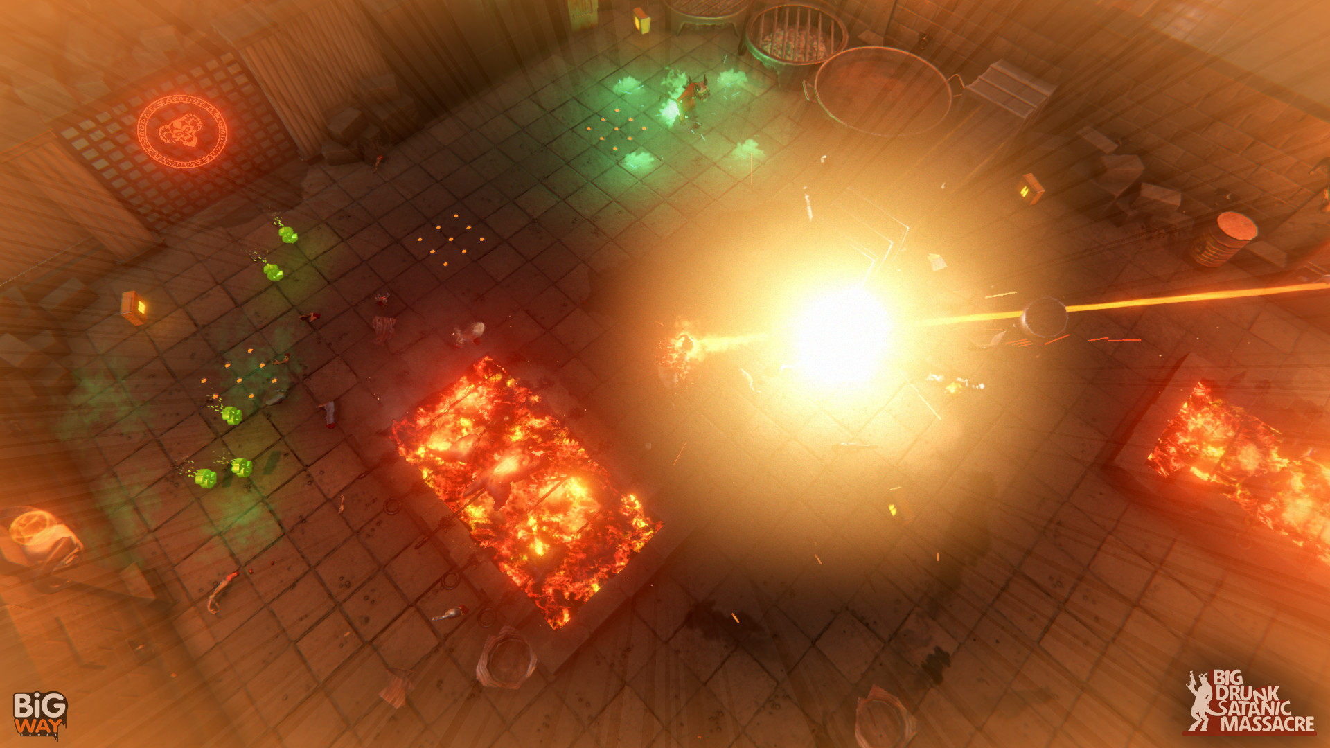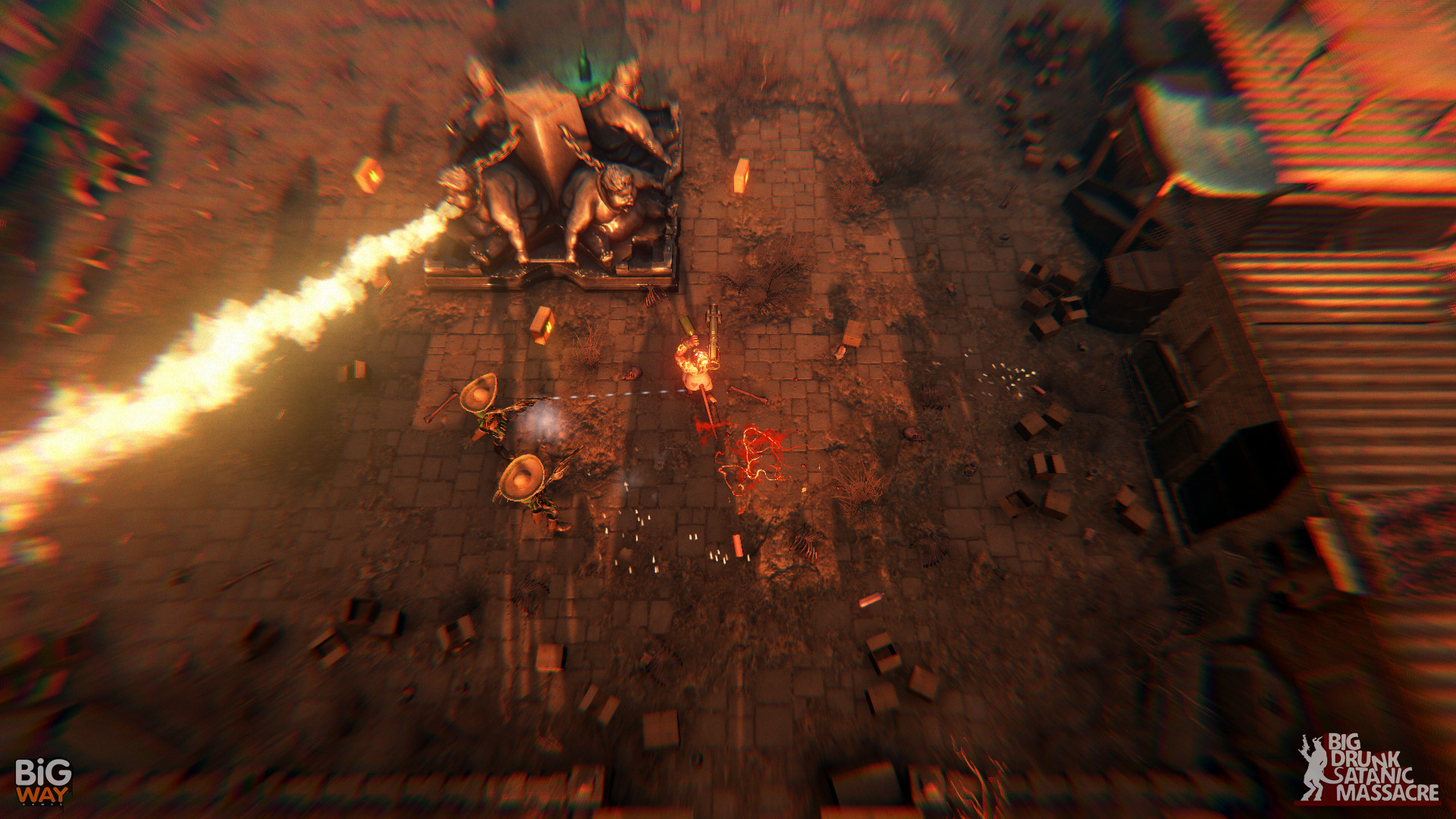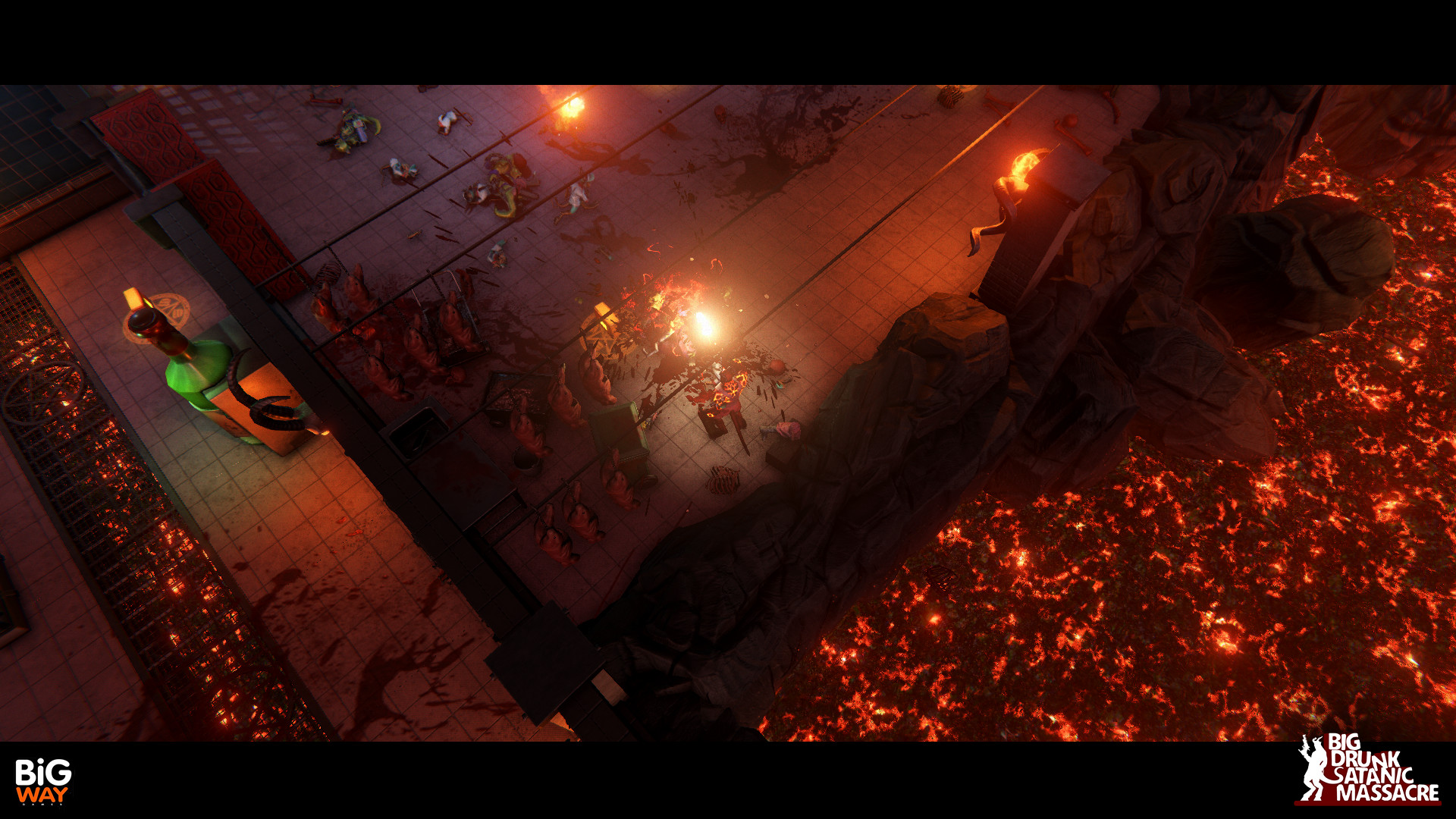 BDSM: Big Drunk Satanic Massacre - это юмористический пародийный шутер, в котором игроков ждет путешествие в самые глубины Ада, который поделен на четыре региона. Цель главного героя Лу - раздобыть себе выпивки, а также спасти самую отвязную демоницу всего Ада из лап чертовски опасного типа. Для этого ему предстоит пройти множество уровней, уничтожив попутно множество врагов и выпив огромное количество алкоголя.