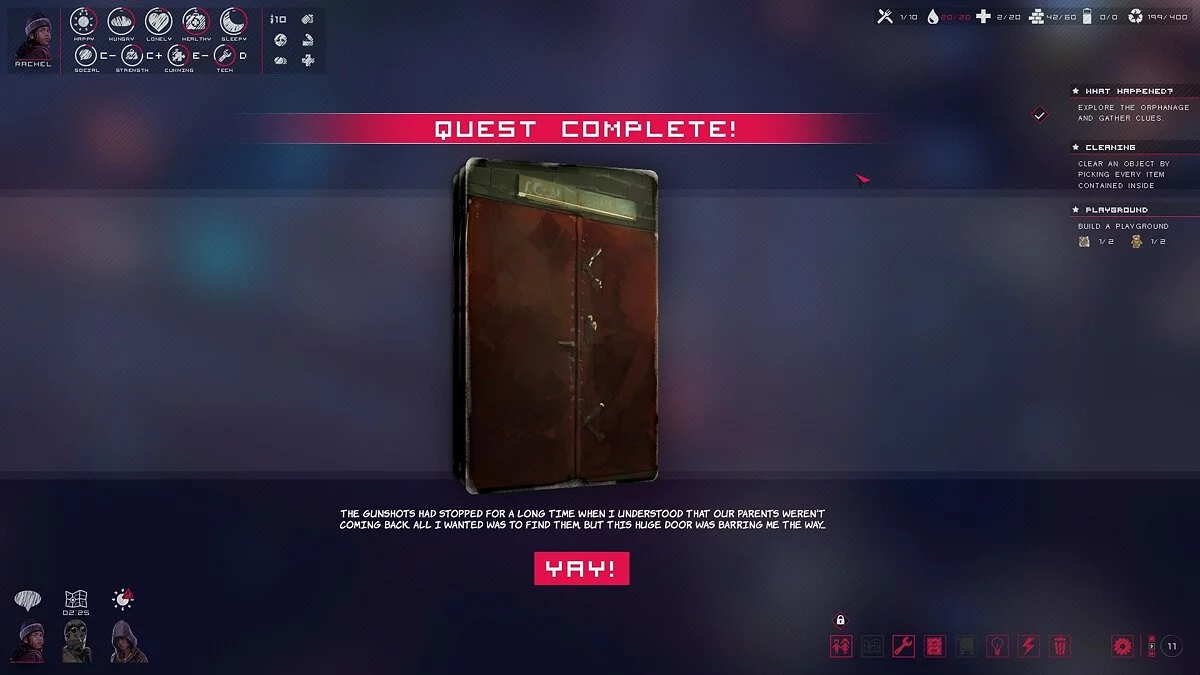 Этот постапокалиптический симулятор выживания предлагает глубокий и эмоциональный геймплей, который заставит вас переживать за каждого своего подопечного. Вам предстоит принимать сложные моральные выборы: отдать последний кусок хлеба голодному ребенку или оставить его на завтра? Пойти на риск ради ценного медикамента или остаться в безопасности? Каждое ваше решение напрямую влияет на благополучие вашей группы и развитие сюжета. Графика в стиле мрачного киберпанка с неоновыми огнями и разрухой создает атмосферу, которая одновременно завораживает и давит, напоминая, что вы — всего лишь дети в мире, который давно сошел с ума.