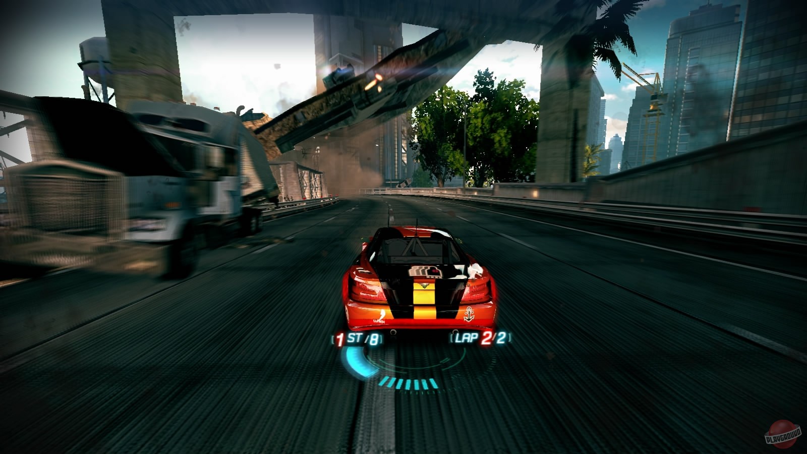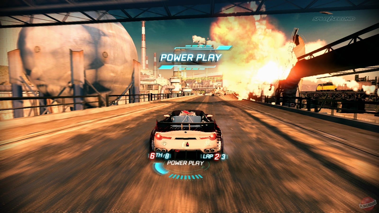 Секрет всего этого хаоса — в уникальной системе Power Play. Выполняя дрифты, прыжки и другие трюки, вы наполняете свой Power Bar, который открывает доступ к невероятным ловушкам на трассе. С одной единицей силы можно подорвать бензоколонку прямо под колесами преследователя. С двумя — обрушить на него целый мост или запустить поезд-камикадзе. А если у вас полный заряд? Тогда приготовьтесь к настоящему катаклизму, который перекроет всю трассу и заставит всех, кроме вас, отправиться в шиномонтаж раньше времени. В Split/Second быть первым — опасно, ведь все остальные будут делать всё возможное (и невозможное), чтобы вас обогнать с помощью окружающей разрухи.
