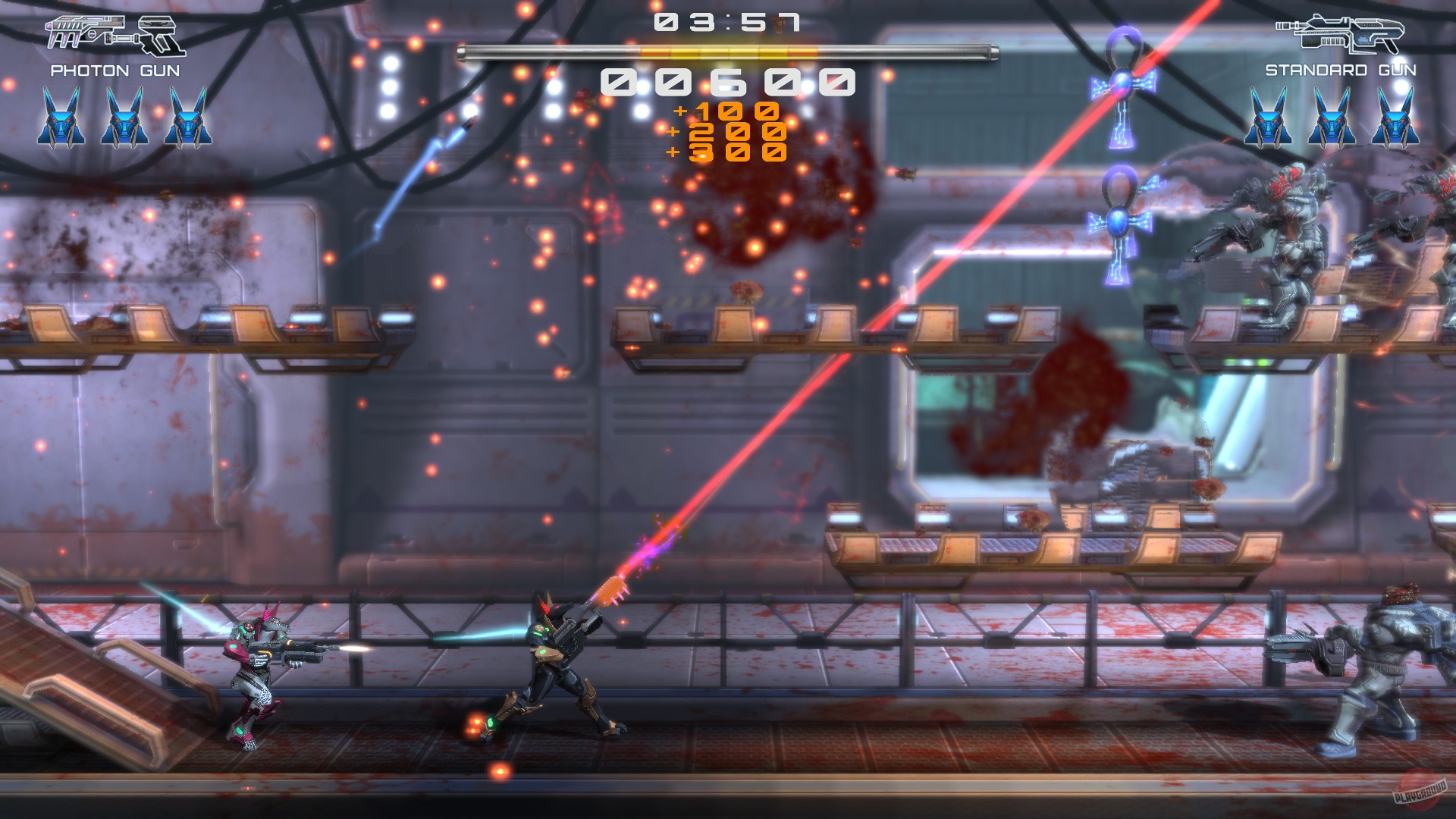 Добро пожаловать в Chaos Domain — место, где древнеегипетские боги решили, что им не хватает немного (а точнее, очень много) экшена и хаоса! Забудьте про спокойные прогулки по пирамидам и загадывание тайн Сфинкса. В этой безумной аркаде вы берете на себя роль Анубиса, бога с головой шакала, который, судя по всему, устал от того, что его постоянно путают с собакой. Теперь он вооружен до зубов и готов расстреливать всех подряд, кто осмелится нарушить порядок в его новом, футуристическом доме. Если вы скучали по динамике старой доброй Contra, но хотели бы добавить к ней щепотку египетской мифологии и пару тонн sci-fi безумия, то вы попали точно по адресу!