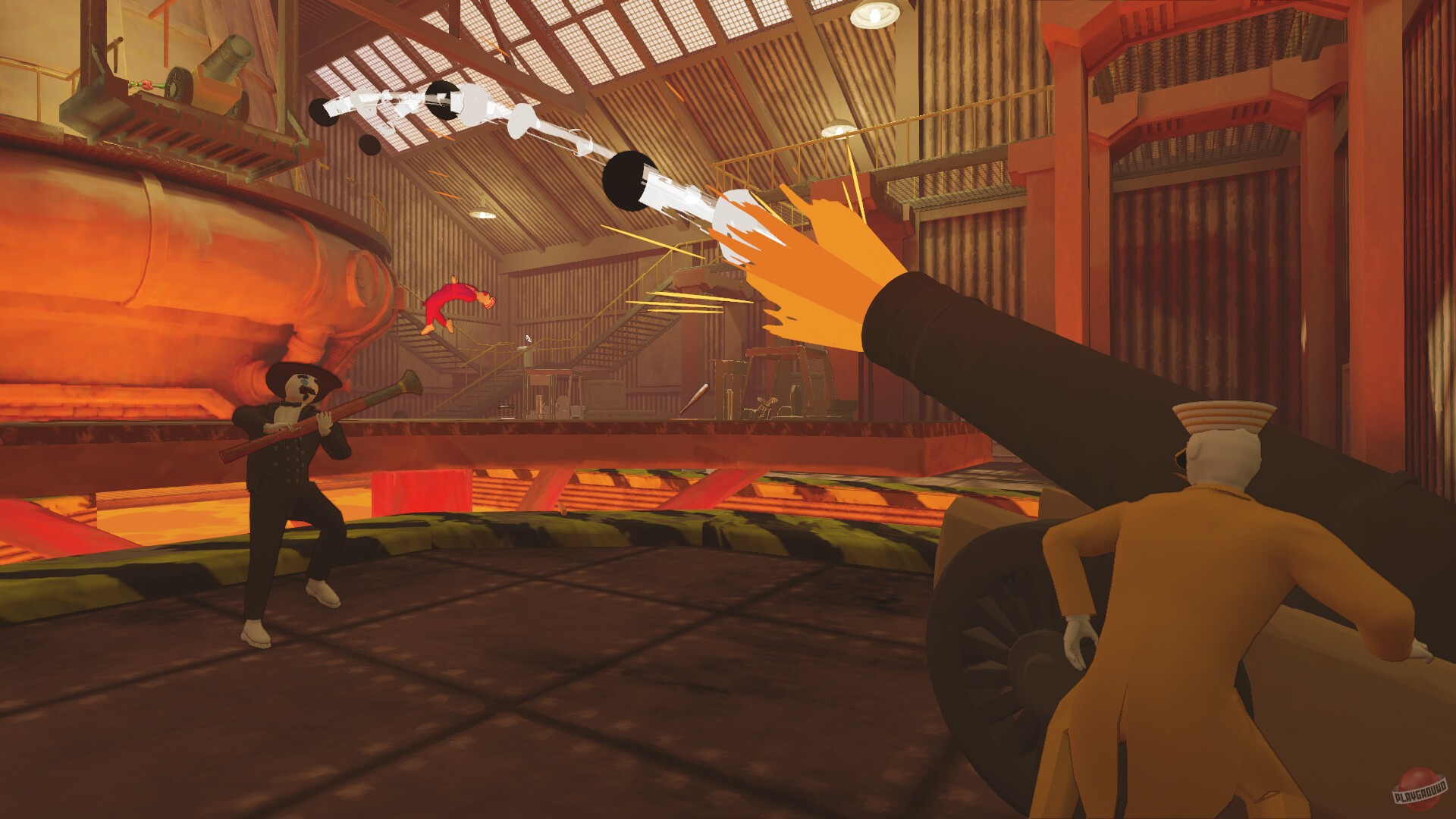 Мультиплеерная драка для компании, где джентльмены в цилиндрах и смокингах выясняют отношения с помощью бейсбольных бит, базук и прочих неджентльменских штуковин. Играть можно вчетвером за одним компьютером или вшестером-восьмером по сети. Цель простая — остаться последним на ногах.