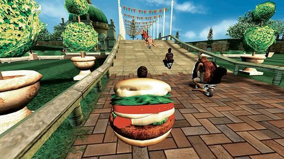 Геймплей Pocketbike Racer — это классический сетап аркадных гонок с изюминкой (а точнее, с целым бургером из безумия). Выбирайте одного из причудливых гонщиков, настраивайте свой мини-мотоцикл и отправляйтесь покорять одну из пяти уникальных трасс. От гоночной петли вокруг статуи Короля до сумасшедших поворотов на заднем дворе ресторана — каждая локация полна неожиданных прыжков, трамплинов и ловушек. А чтобы гонка не казалась слишком мирной, разработчики добавили систему ускорений и оружие! Да-да, вы можете подложить банановую кожуру сопернику или запустить в него ракету, пока сами набираете скорость с помощью турбо-буста. Это не просто гонки, это настоящий хаотичный боевик на двух колёсах!