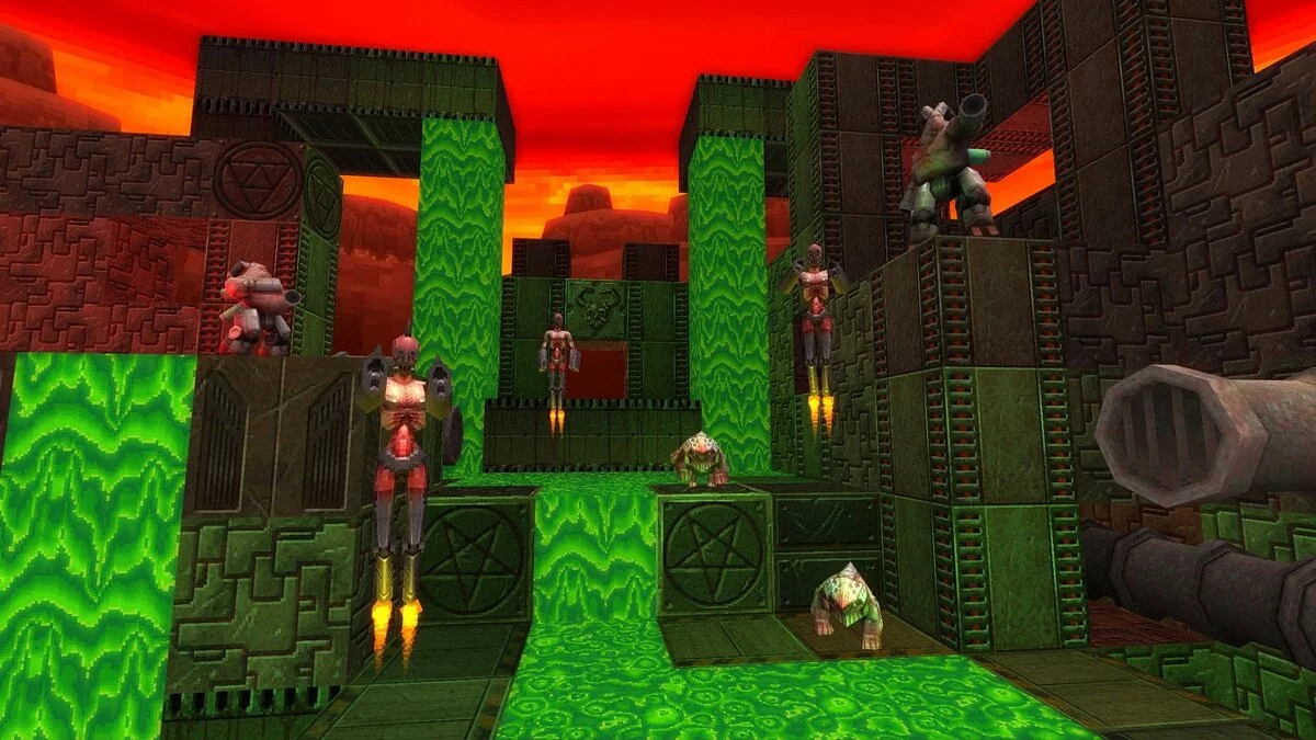 Забудьте про скучные шутеры, где вы просто бегаете по чужим уровням и стреляете в чужих монстров! В Gunscape вы не просто игрок — вы бог, архитектор и, конечно же, безумный учёный, создающий собственный ретро-ад для друзей (или врагов!). Эта игра — настоящий любовный гимн классическим шутерам от первого лица 90-х, но с изюминкой: весь мир здесь строится вами и для вас. Хотите лабиринт из пиксельных кирпичей с лавой на полу и цыплятами-убийцами под потолком? Пожалуйста! Мечтаете о карте, которая является точной копией вашей кухни, только с ракетницами вместо микроволновки? Добро пожаловать в Gunscape, где ваша фантазия — единственный предел!