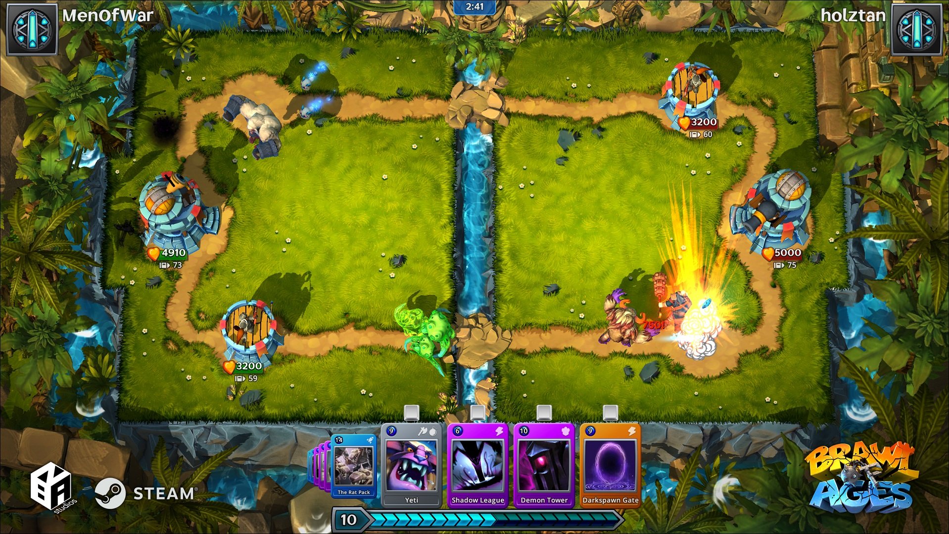 Геймплей Brawl of Ages — это как если бы Clash Royale и Dota 2 решили устроить совместную вечеринку и позвали на неё все лучшие элементы tower defence. Вы собираете уникальную колоду из своих любимых юнитов и заклинаний, а затем вступаете в динамичную перестрелку на специальной арене. Ваша цель — уничтожить базу противника, но сделать это не так-то просто: нужно грамотно распределять ресурсы, выбирать правильный момент для атаки и контратаковать, как настоящий стратег. Каждая карта — это не просто картинка, а живой боец со своими способностями, и от вашего тактического чутья зависит, станет ли он ключом к победе или просто пешкой в чужой игре.