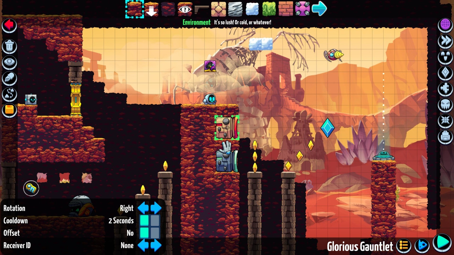 Геймплей Levelhead — это идеальный баланс между простотой и глубиной. Управление интуитивно понятно: бегай, прыгай, хватайся за уступы и стреляй из своего верного гаджета. Автоматическая система наведения делает игру комфортной даже на сенсорных экранах, так что вы можете спокойно играть на планшете, пока ваш кот пытается украсть ваш обед. Каждый прыжок отзывчив, каждое столкновение с ловушкой — это не фрустрация, а урок, который заставляет вас возвращаться снова и снова. Отзывы игроков единодушны: это один из лучших примеров жанра «платформер с созданием уровней», который может похвастаться как качественной одиночной игрой, так и безграничным мультиплеерным весельем.
