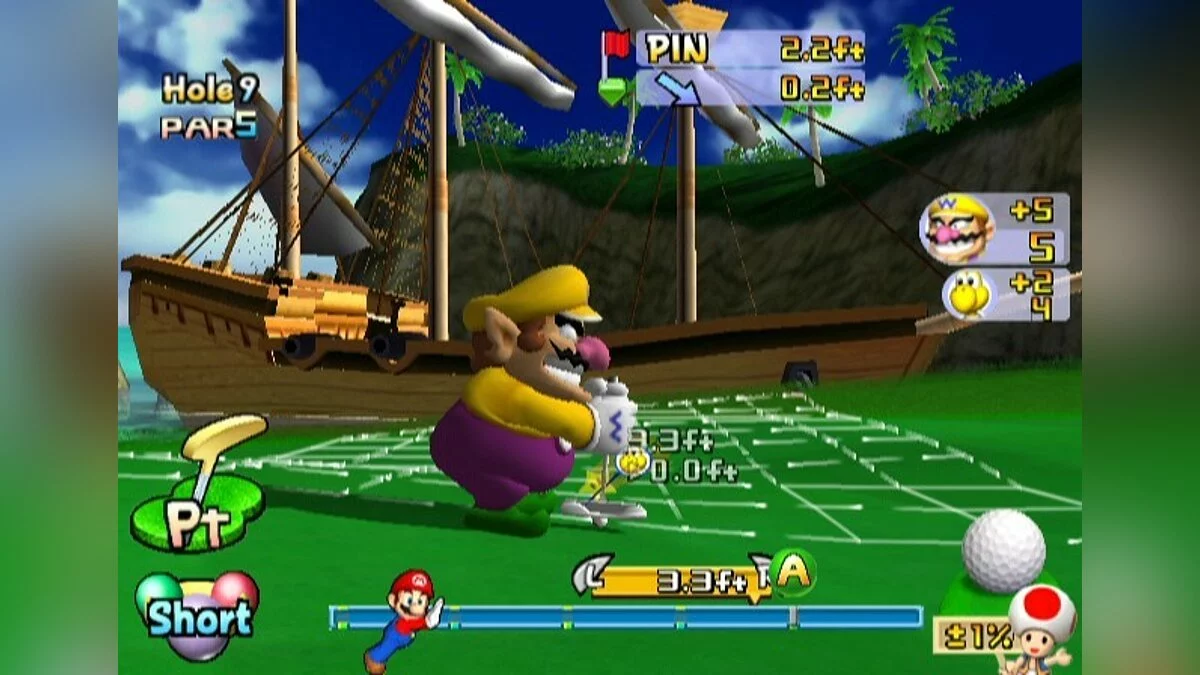 Mario Golf: Toadstool Tour — это игра в гольф, в которой участвуют персонажи, враги и темы из серии игр про Марио. Как и в обычной игре в гольф , цель игрока состоит в том, чтобы забить мяч в лунку, используя как можно меньше ударов. Перед замахом игрок выбирает клюшку, общее направление и дальность полета мяча. Во время замаха игрок определяет мощность, синхронизируя нажатие кнопки, чтобы маркер остановился в нужной точке на измерителе мощности. В этот момент игрок может повлиять на направление мяча, применяя вращение. Игроки могут переключаться между автоматическими и ручными выстрелами, причем последний дает игроку больше контроля, хотя и с более высоким риском неудачного выстрела.