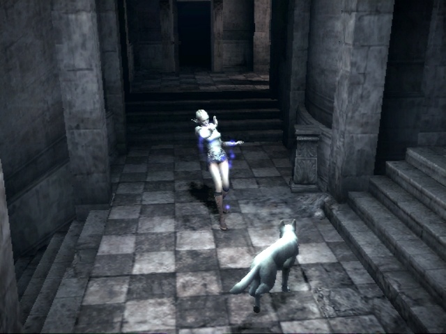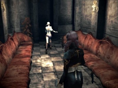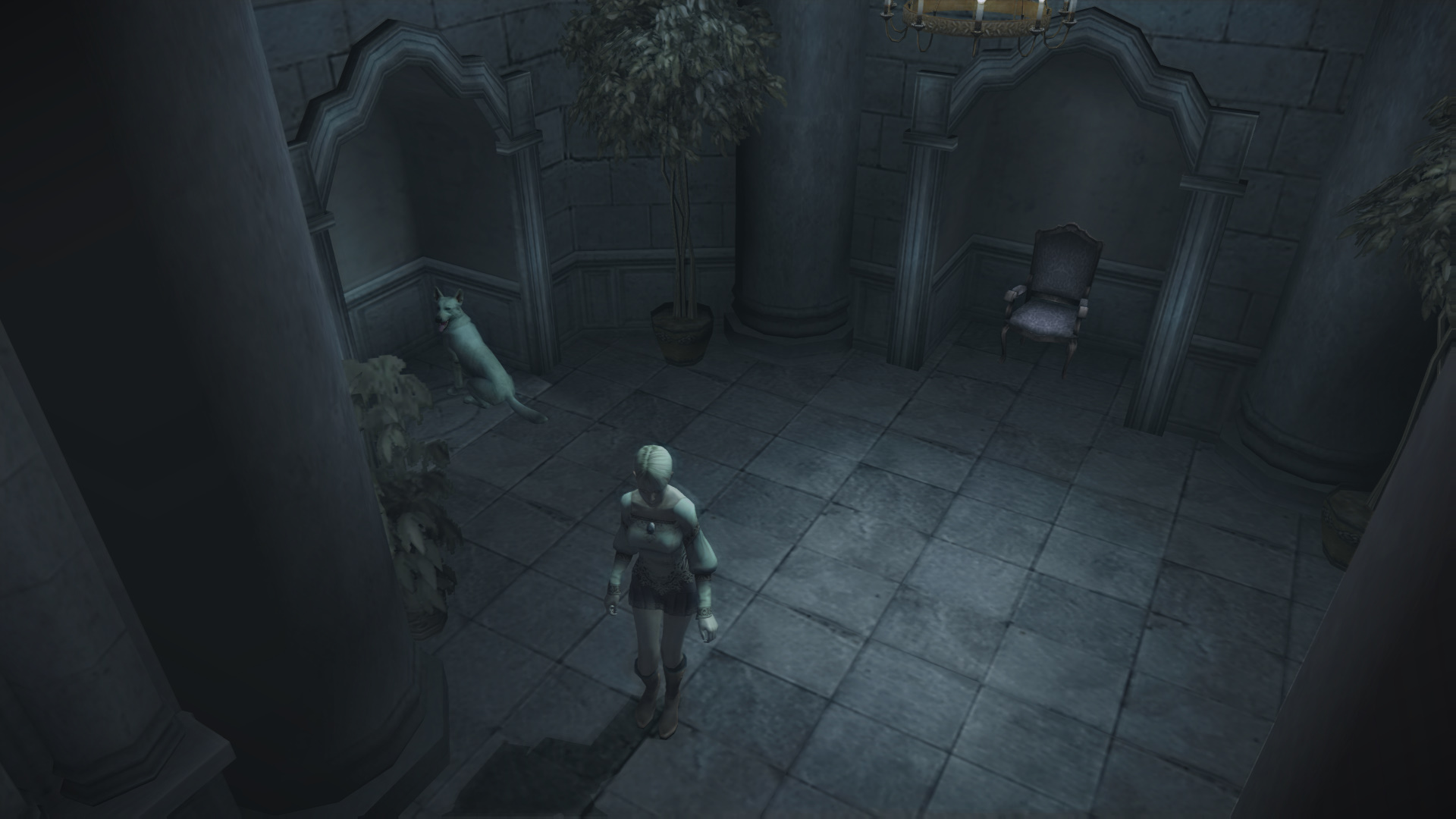 Геймплей Haunting Ground построен на постоянном напряжении и уклонении от преследователей. Главный из них — Даниэль, бывший дворецкий с очень специфическими... гигиеническими привычками и склонностью к неожиданным появлениям. Он не просто хочет вас поймать — он буквально охотится за вами, и его поведение меняется в зависимости от ваших действий. Это не линейный зомби, которого можно предсказать; это живой кошмар, который заставит вас перепроверять каждую тень. Ваши инструменты — это не оружие, а окружающая среда: вы будете метать в преследователя вазы, использовать ловушки и, конечно же, командовать верным Хьюим, чтобы тот отвлекал внимание или находил спрятанные предметы. Каждая комната в этом мрачном особняке — это головоломка, которую нужно решить, чтобы продвинуться дальше и раскрыть мрачные секреты семьи, владевшей этим местом.