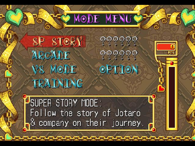 JoJo's Bizarre Adventure — это аркада с видом от третьего лица с элементами экшена, файтинга и игры в жанре аниме или манга от девелоперов из студии Capcom Co., Ltd.. Издает игру компания Capcom Co., Ltd.. Иногда игру еще называют JoJo no Kiimyo na Bouken.