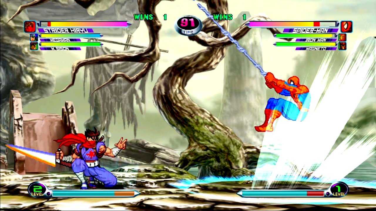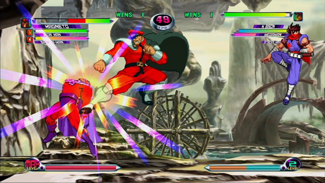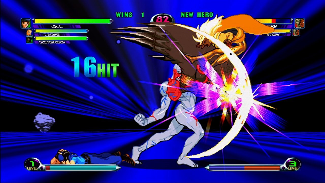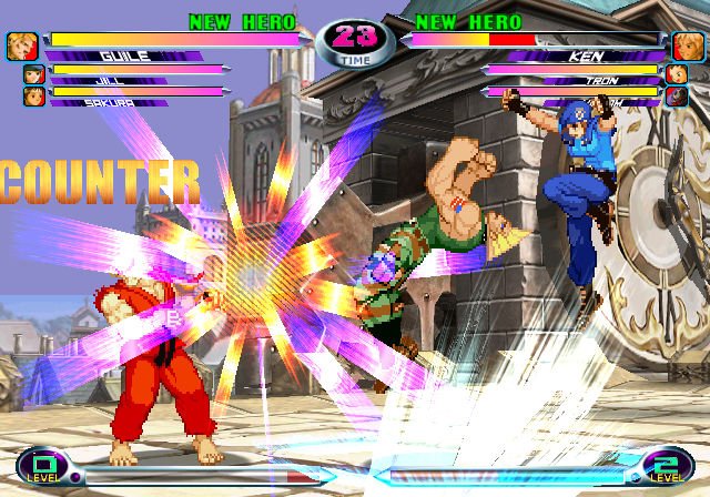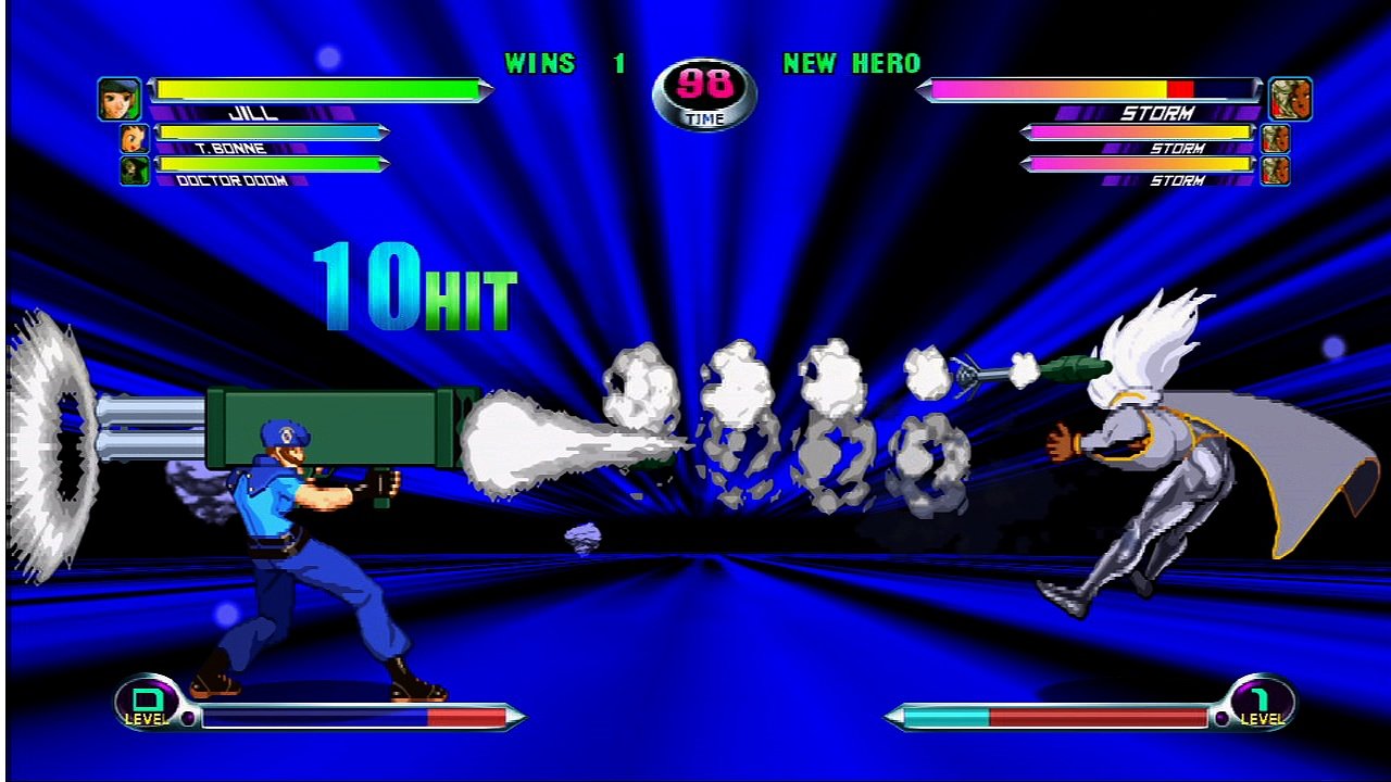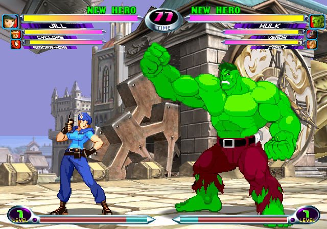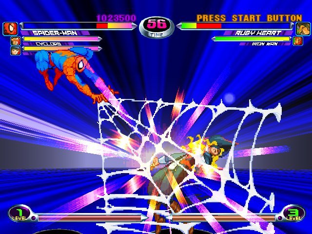 Файтинг, в котором схлестнулись персонажи из вселенных Marvel и Capcom. Вы можете выбрать одного из 56 персонажей и сразиться с другими игроками или компьютером. Графика персонажей выполнена в традиционном 2D-анимированном стиле, а фоны и визуальные эффекты — в 3D.