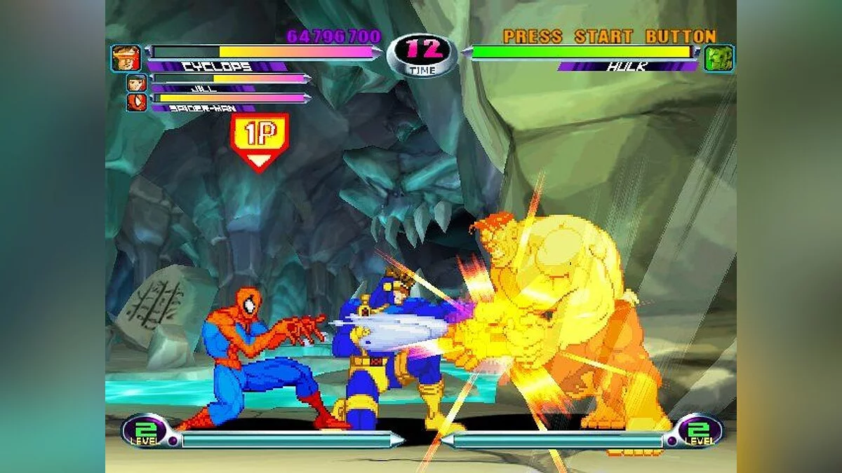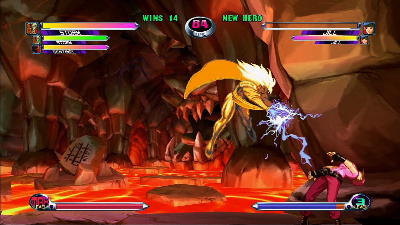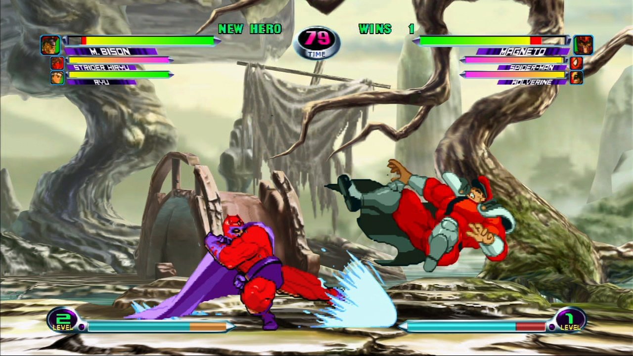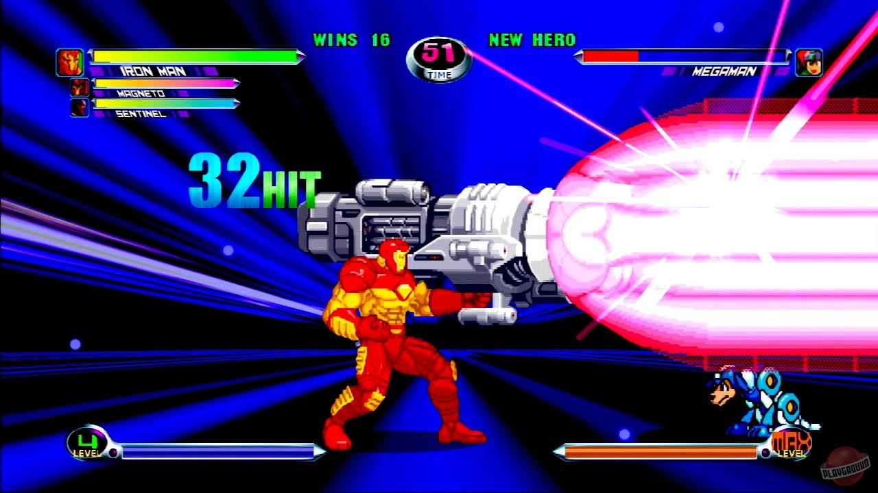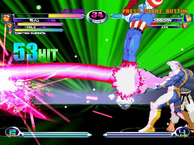 Файтинг, в котором схлестнулись персонажи из вселенных Marvel и Capcom. Вы можете выбрать одного из 56 персонажей и сразиться с другими игроками или компьютером. Графика персонажей выполнена в традиционном 2D-анимированном стиле, а фоны и визуальные эффекты — в 3D.